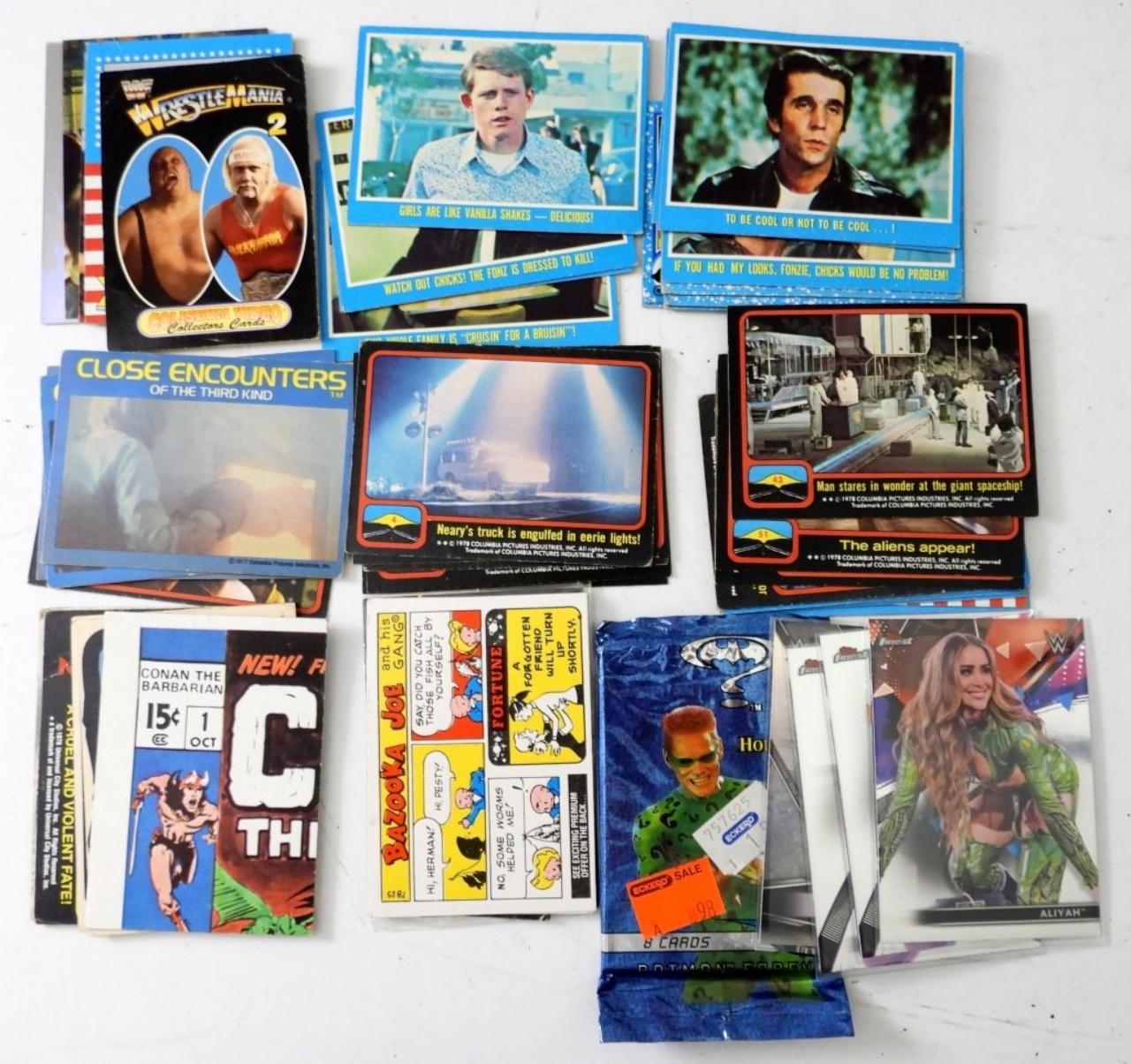 () 1987 TOPPS WWF, (15) CLOSE ENCOUNTERS, (7) ET, (9) HAPPY DAYS (22) OTHERS plus 95 FLEER ULTRA BATMAN HOLO PACK