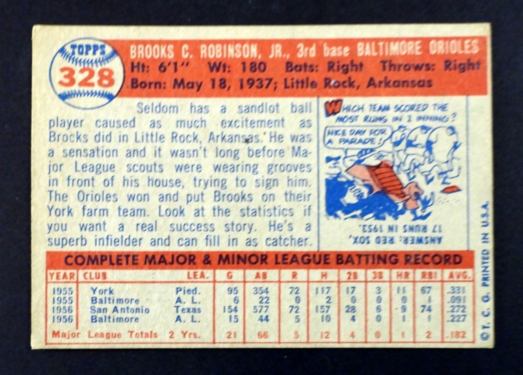 1957 TOPPS # 328 BROOKS ROBINSON ROOKIE, VGEX
