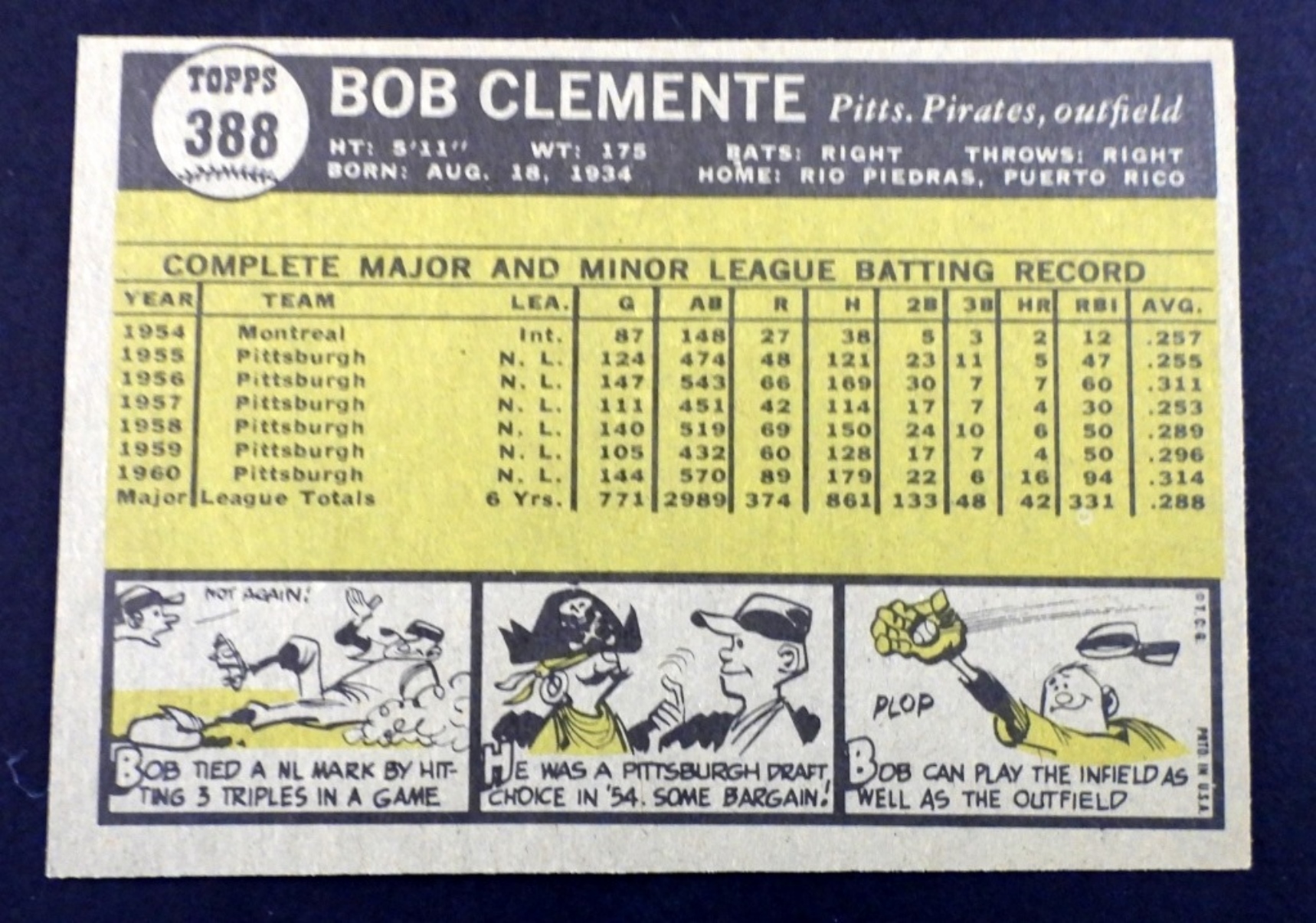 1961 TOPPS# 388 BOB CLEMENTE VG/EX