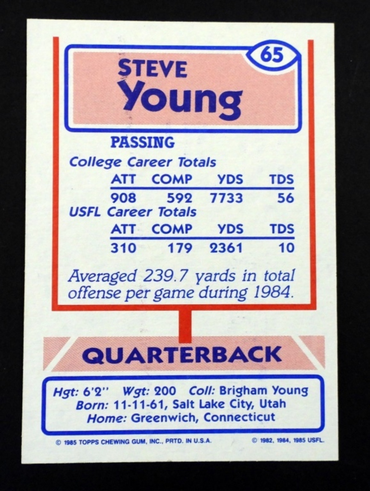 1984 TOPPS #65 STEVE YOUNG USFL, EX/NM+