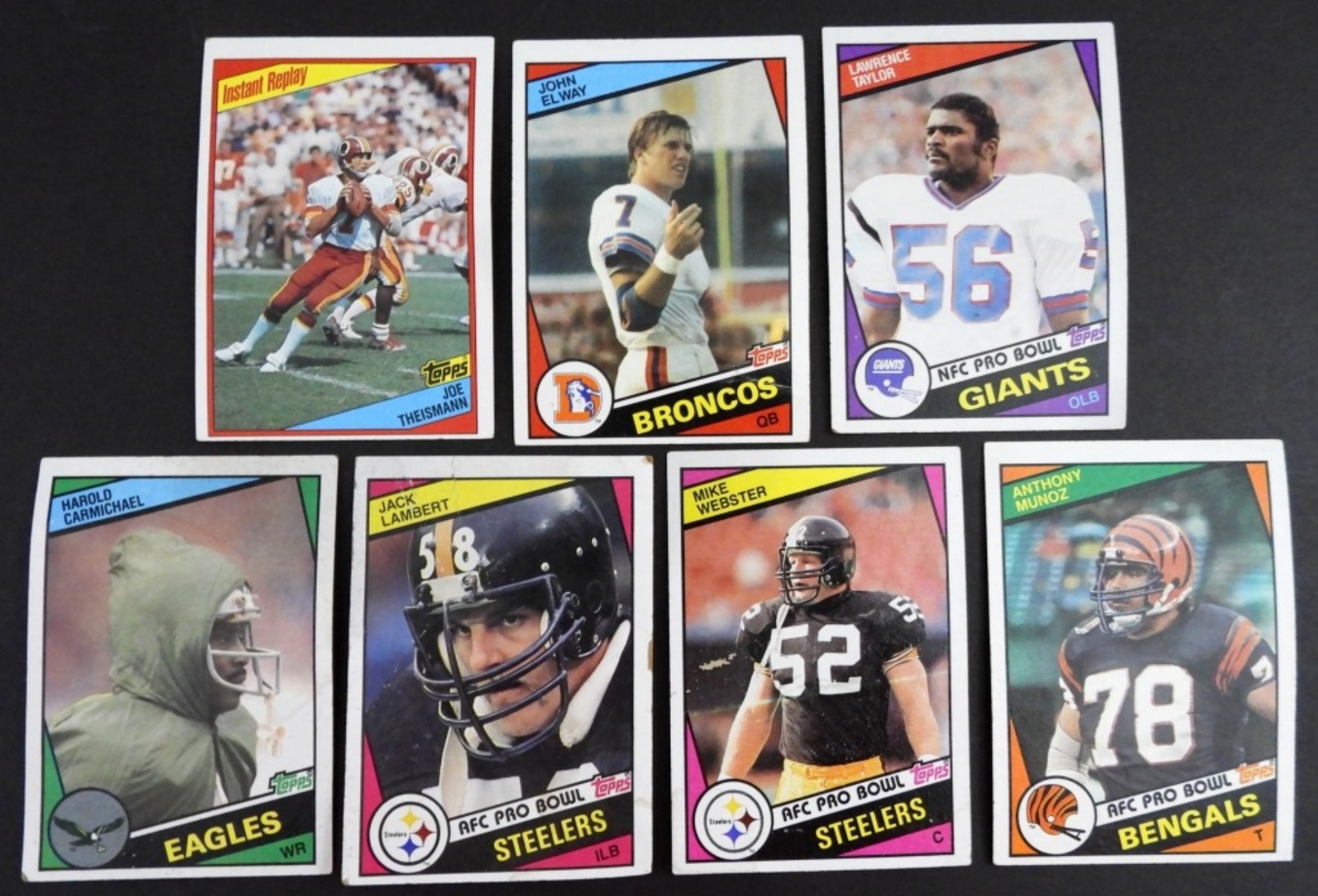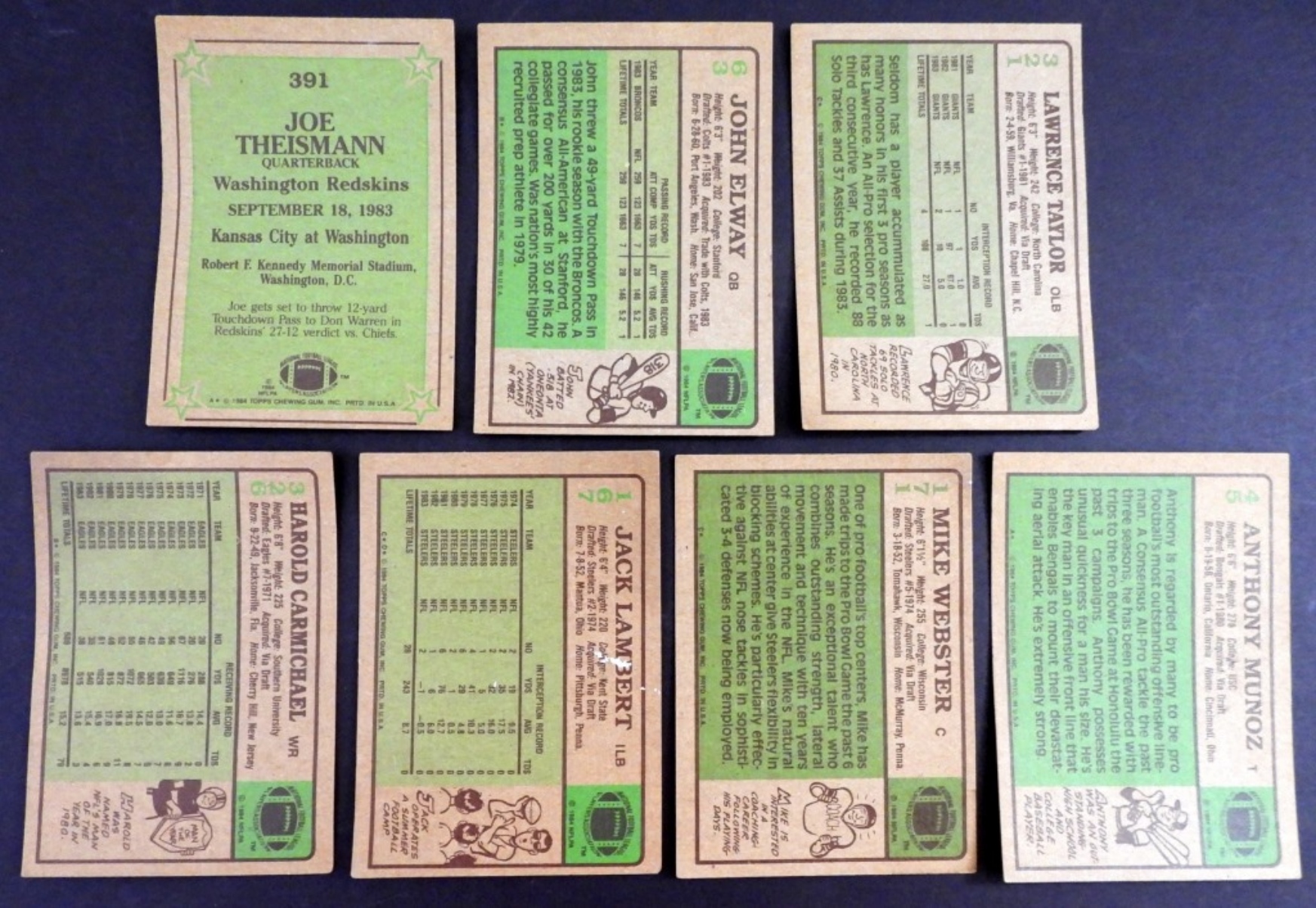 (6) OTHER 1984 TOPPS CARDS – ELWAY GOOD creased with punch mark