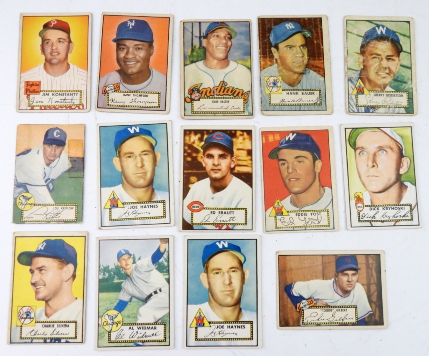 (14) 1952 TOPP BASEBALL CARD LOT G/VG# 108 JIM KONSTANTY,#61 TOOKIE GILBERT.#3 HANK THOMPSON & MORE