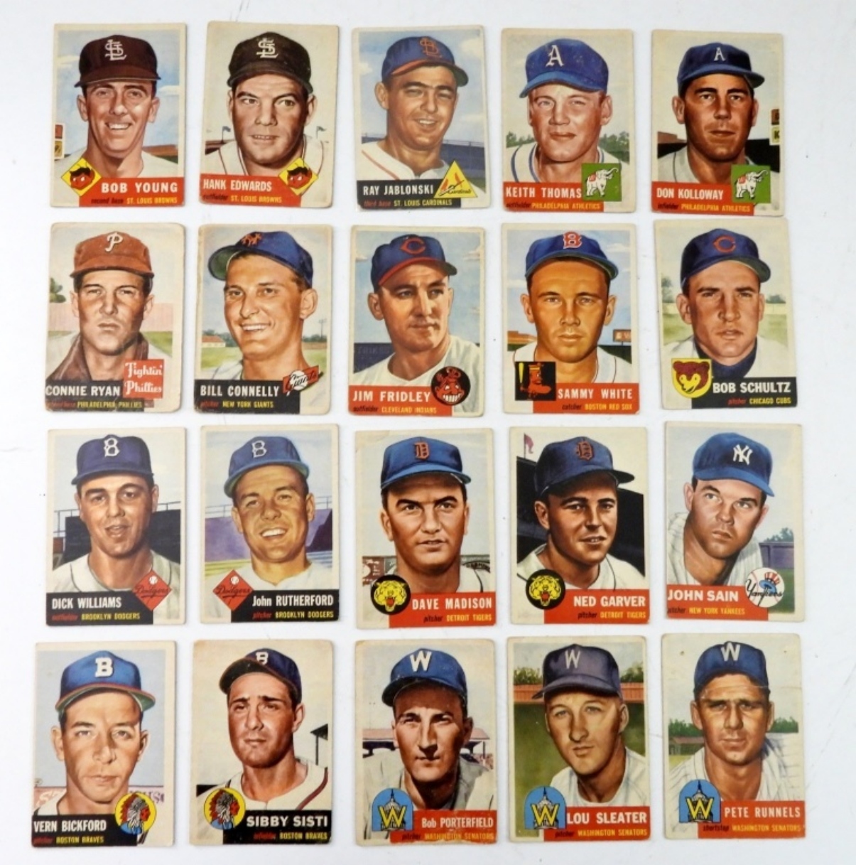 (20) 1953 TOPPS BASEBALL CARD LOT G/VG