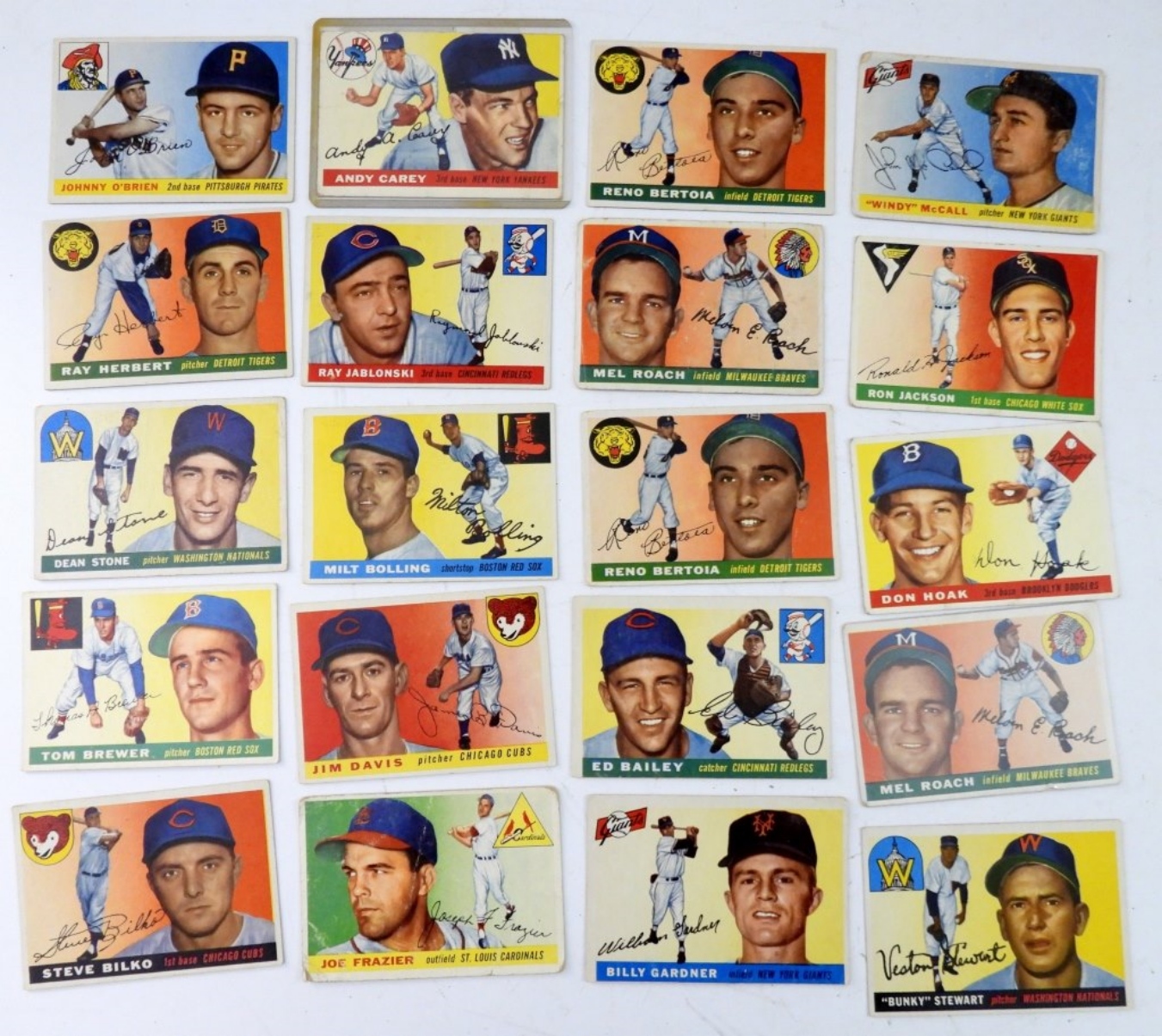 (20) 1955 TOPPS BASEBALL CARDS G/VG. VARIOUS TEAMS & PLAYERS