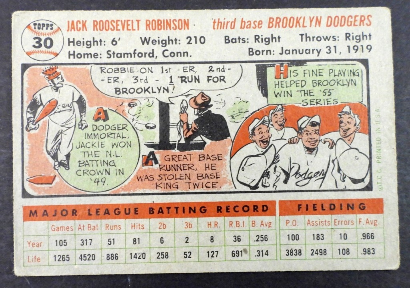1956 TOPPS JACKIE ROBINSON VG/EX
