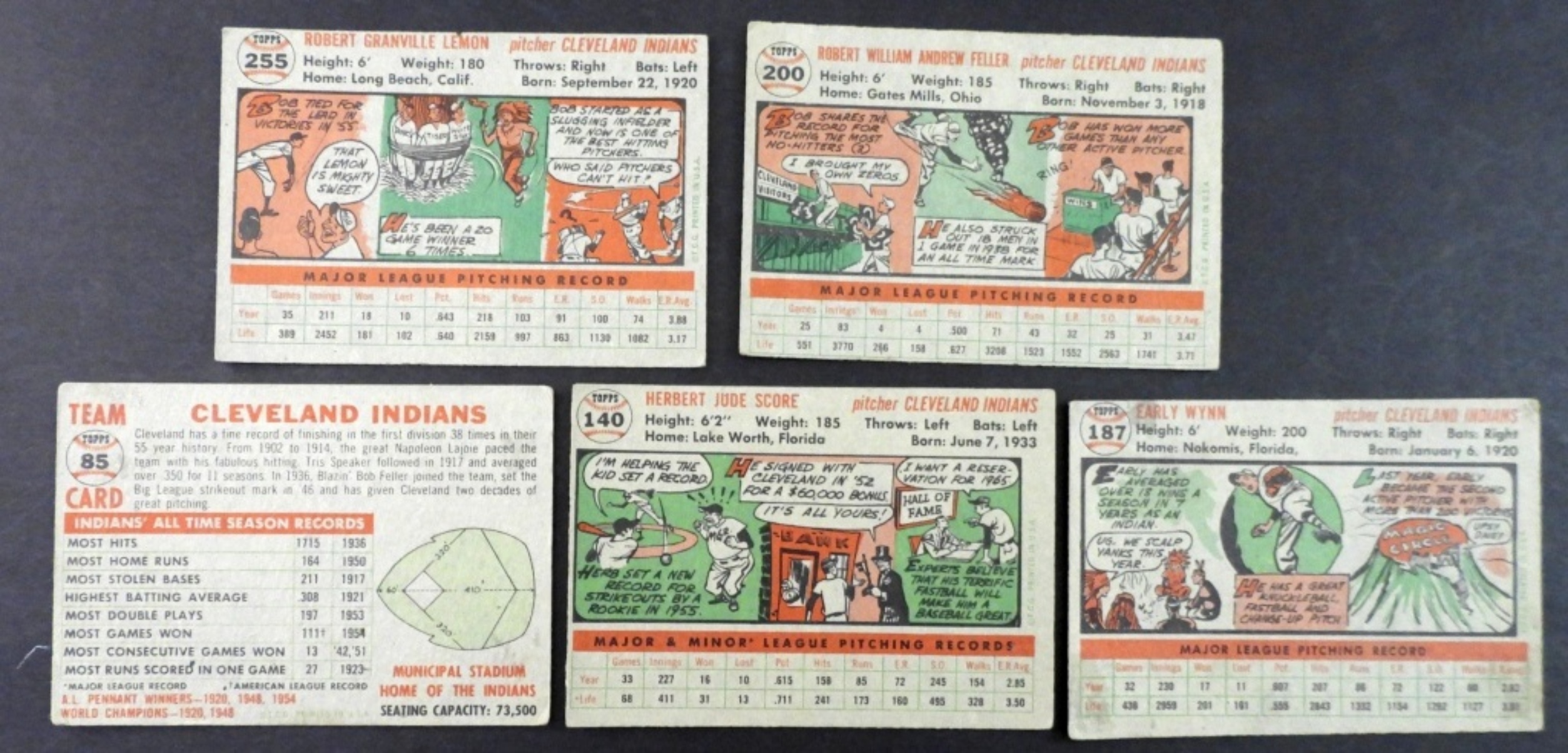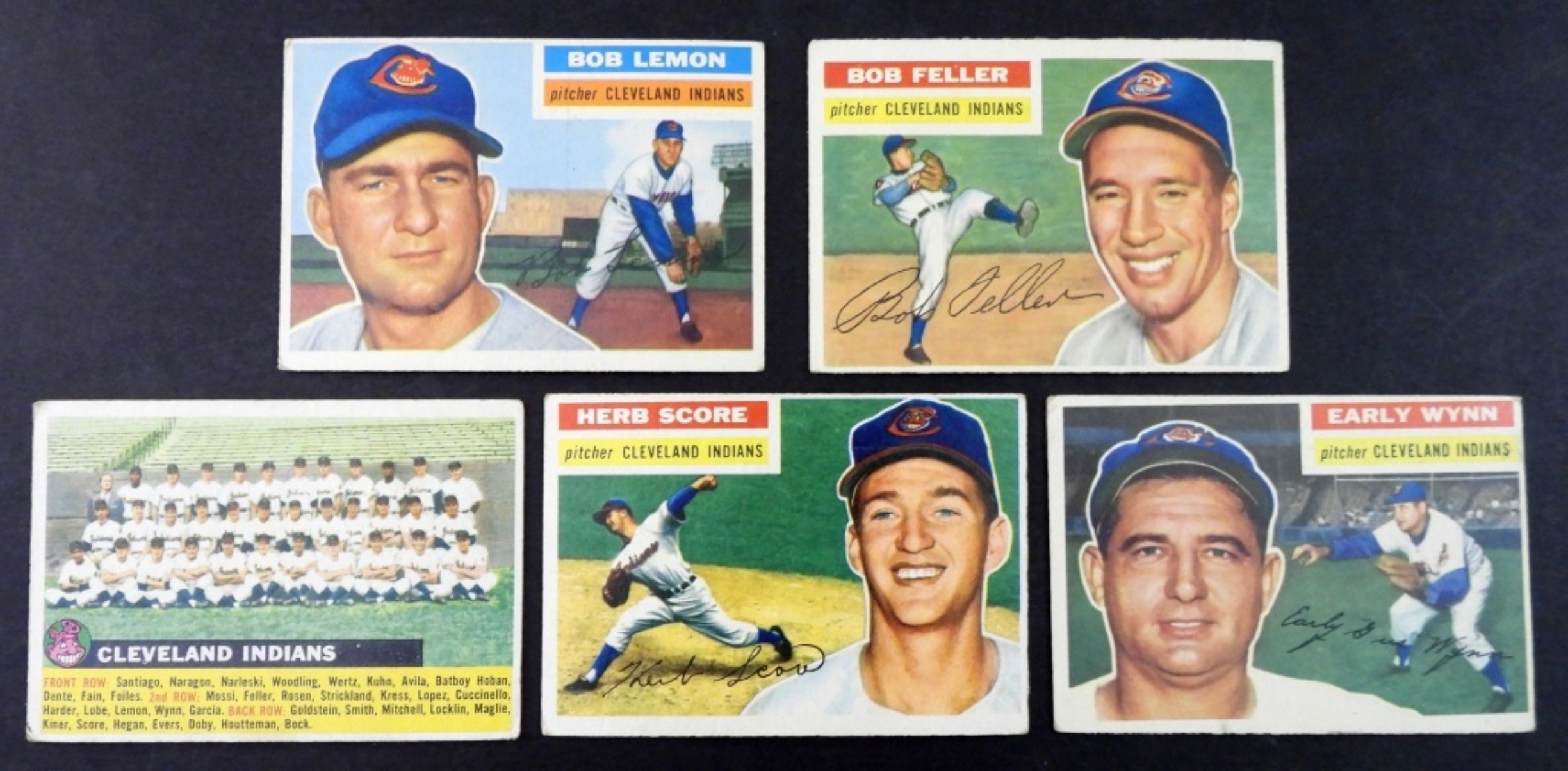 (5) 1956 TOPPS CLEVELAND INDIANS VG, #200 BOB FELLER HOF & ,MORE