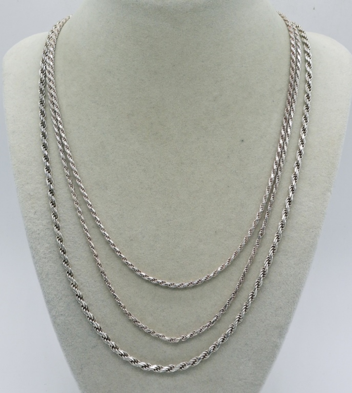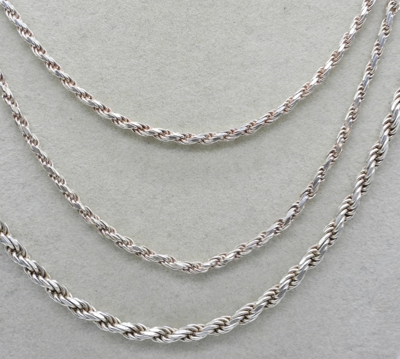 THREE STERLING SILVER ROPE CHAINS, VERY PRETTY. 20 & 24 INCHES. 25.6 DWT