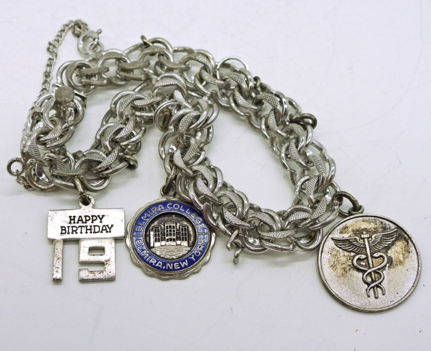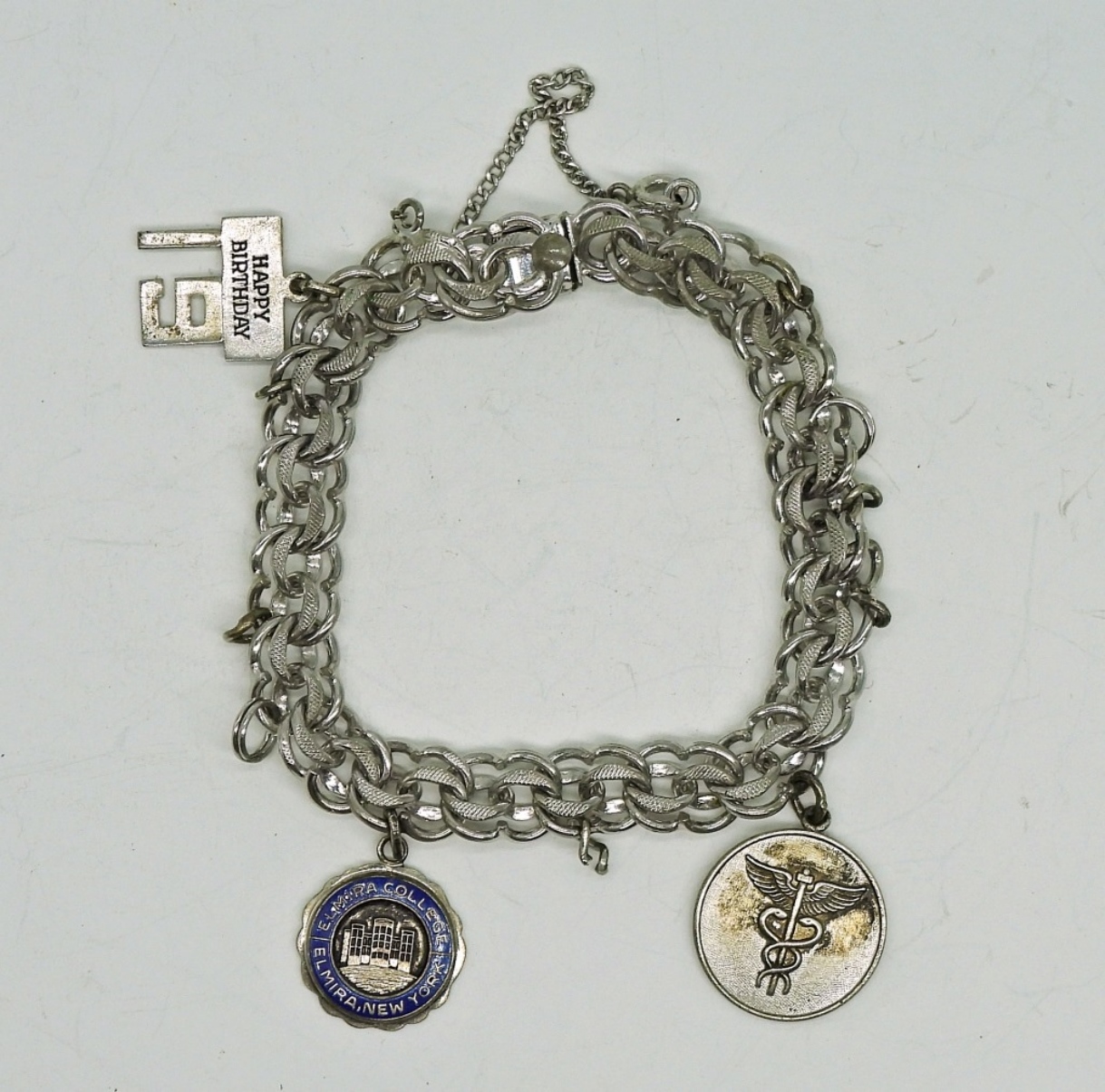 Sterling Charm Bracelet, 7″ with 3 Charms. 18.2 DWT