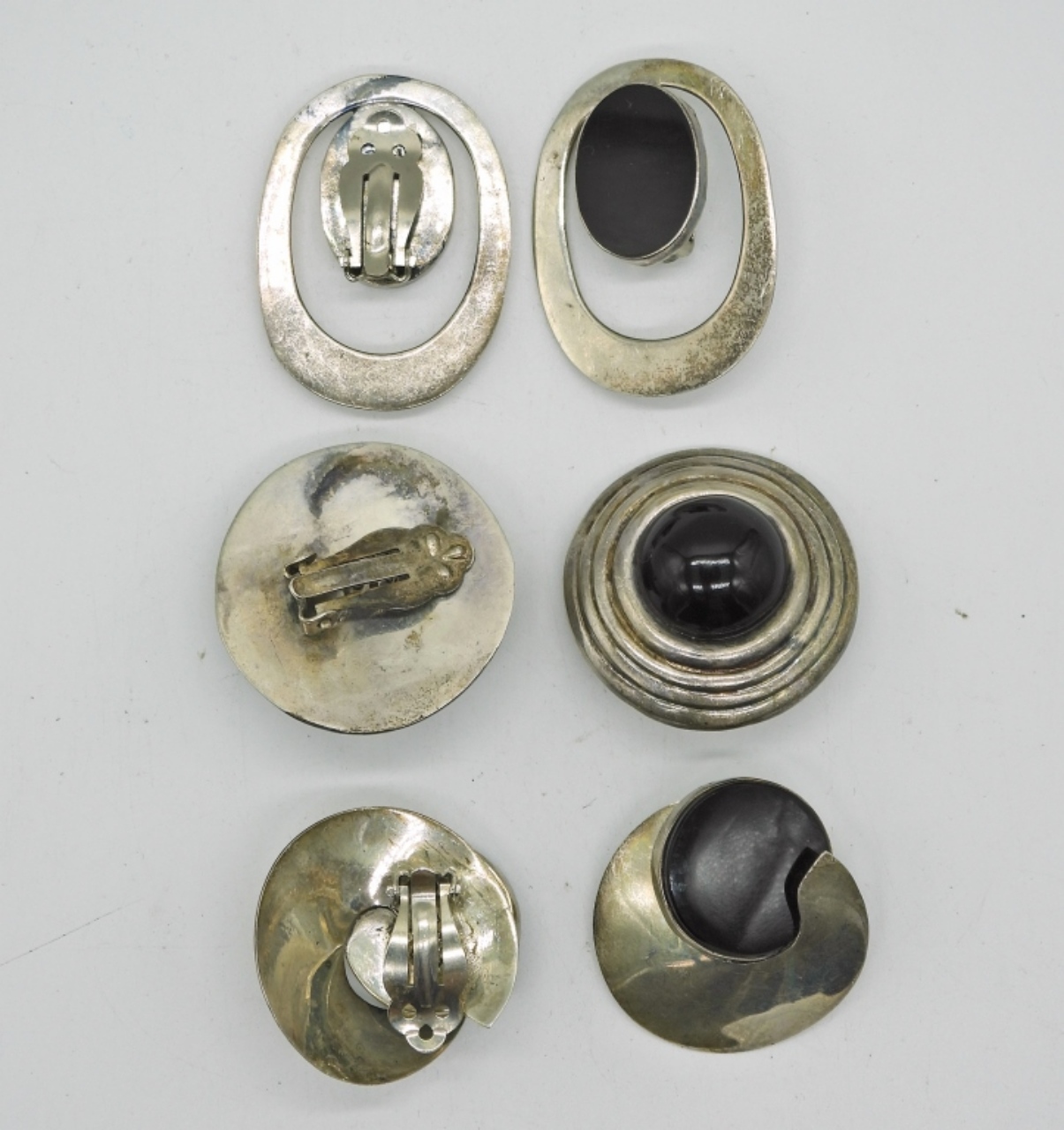 3 PAIR OF VINTAGE STERLING BLACK ONYX EARRINGS. CLIP ONS. MEXICO 925. 44.6 DWT