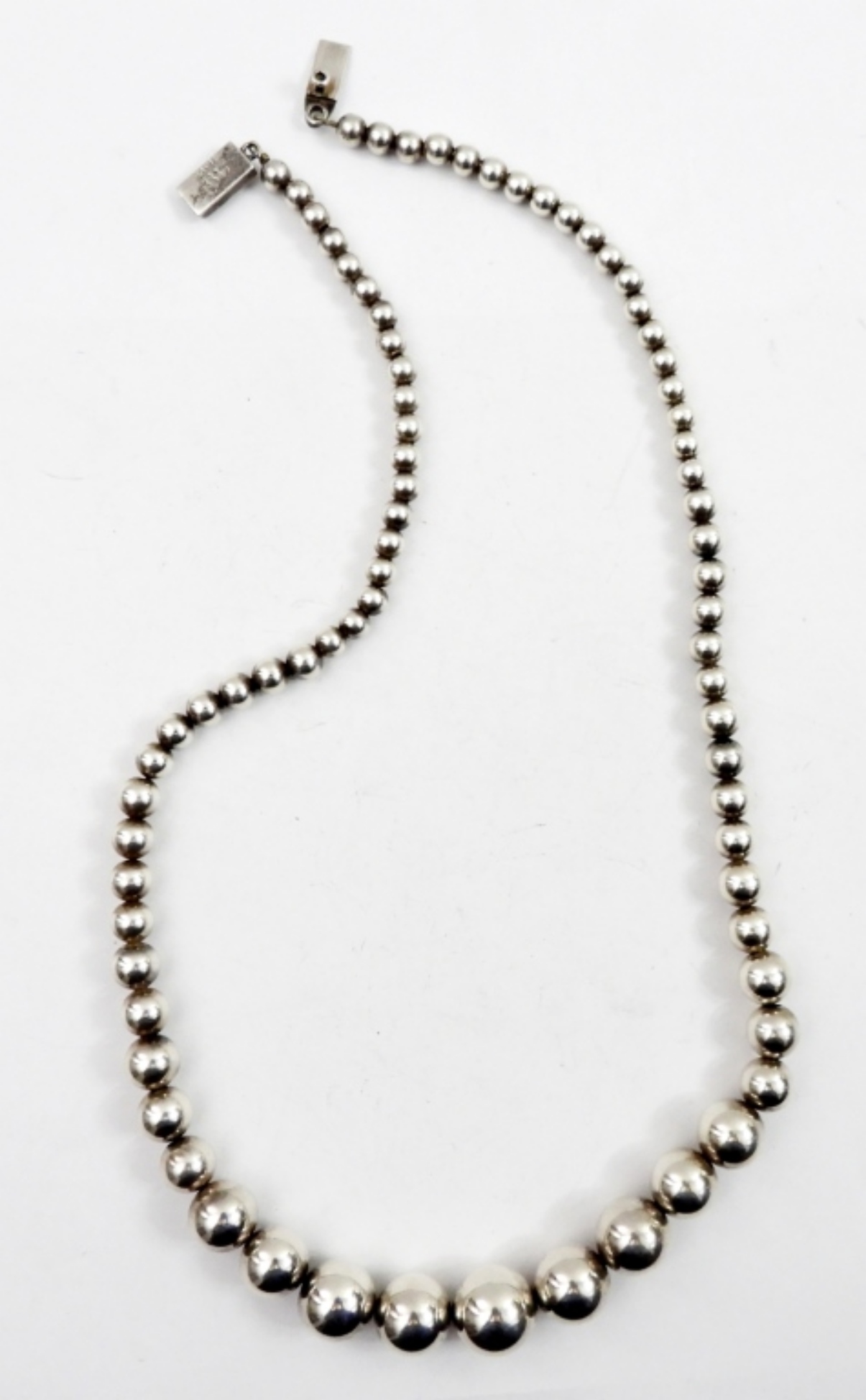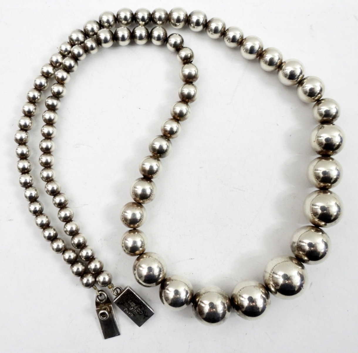 STERLING BEADED NECKLACE, 24″. MARKED MEXICO 925. 36.4 DWT