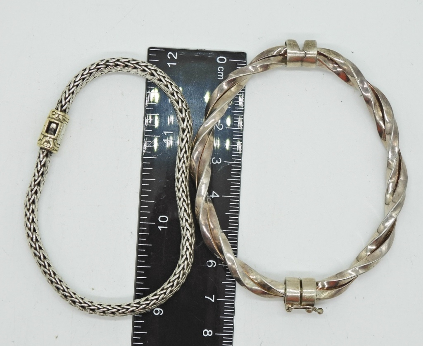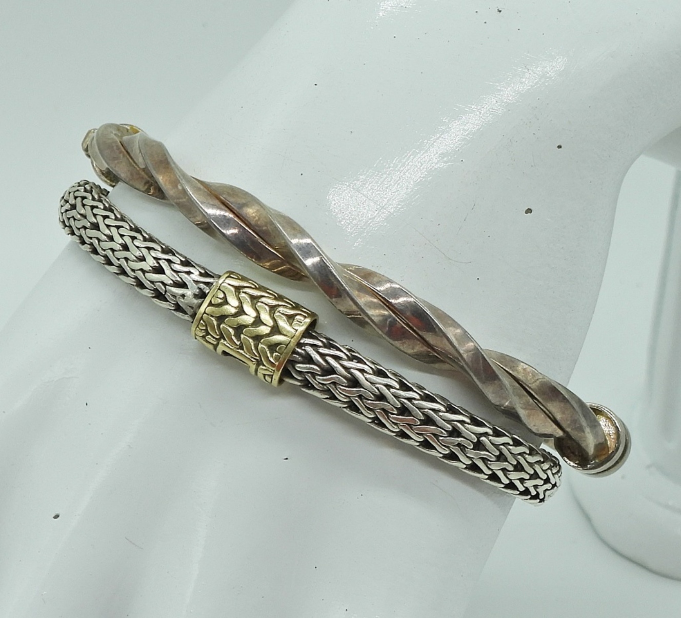TWO UNIQUE STERLING BRACELETS, 6-7″. 26.8 DWT