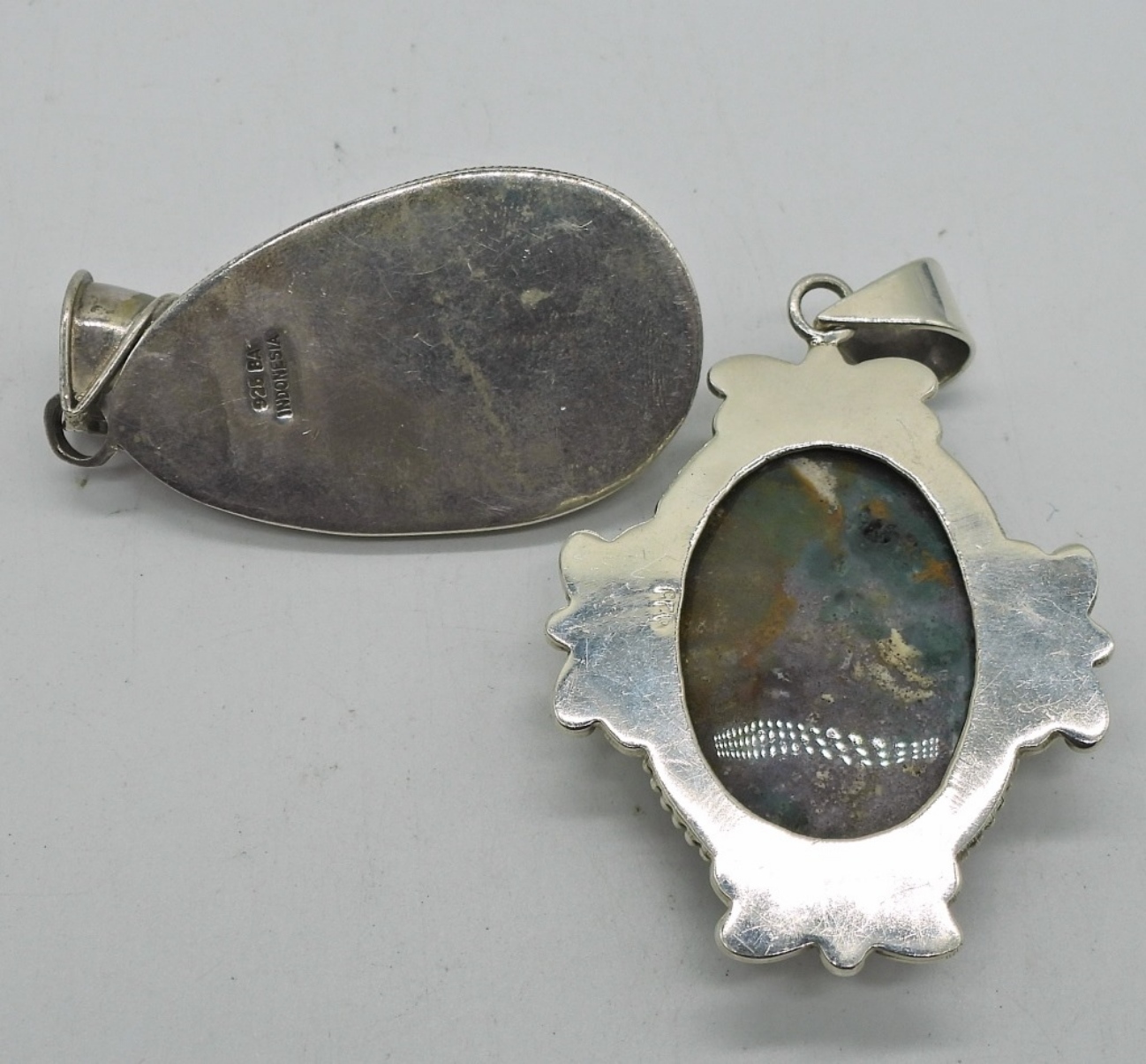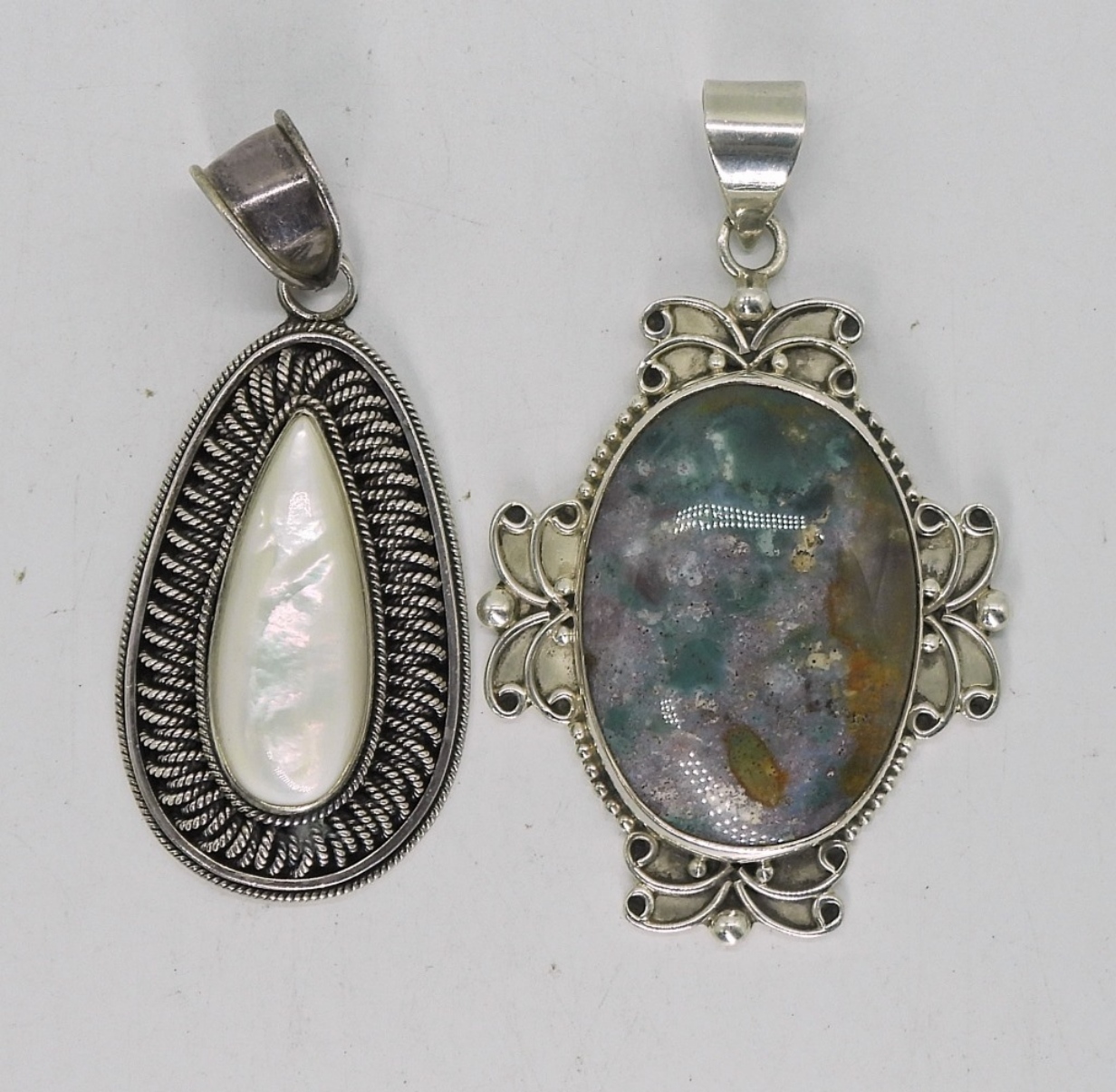 TWO BEAUTIFUL NATURAL GEMSTONE PENDANTS IN STERLING SILVER. 2.5″ LONG. 23 DWT