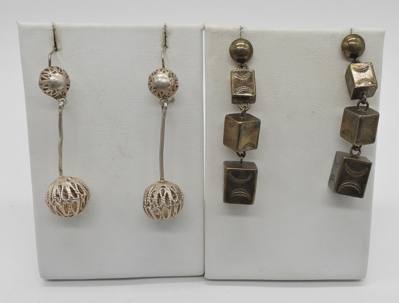 TWO PAIR OF VINTAGE PIERCED DANGLING EARRINGS. 12.4 DWT