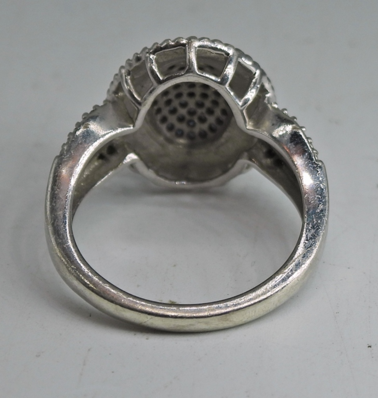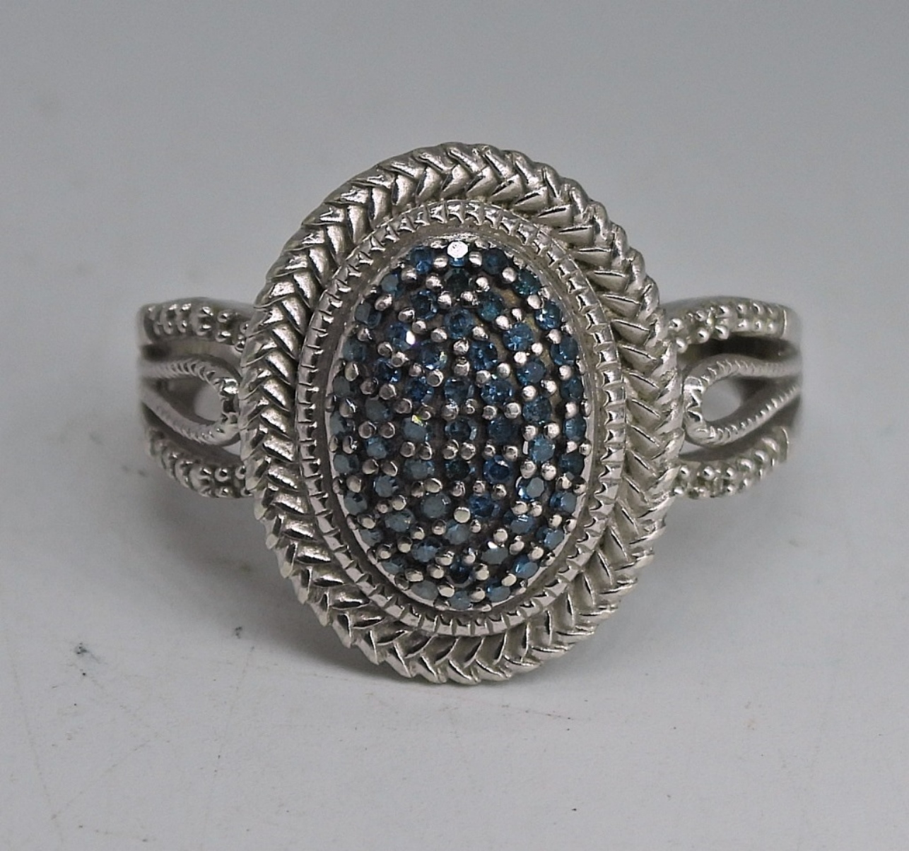 STERLING SILVER RING WITH TINY BLUE DIAMONDS (TESTED), SIZE 7. 2.8 DWT