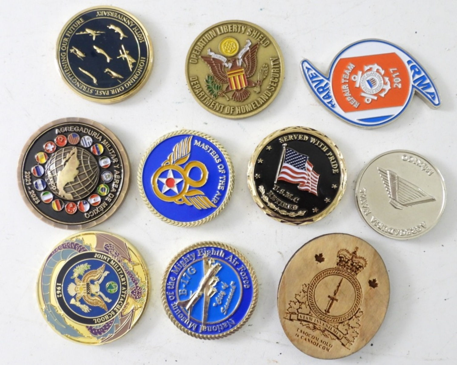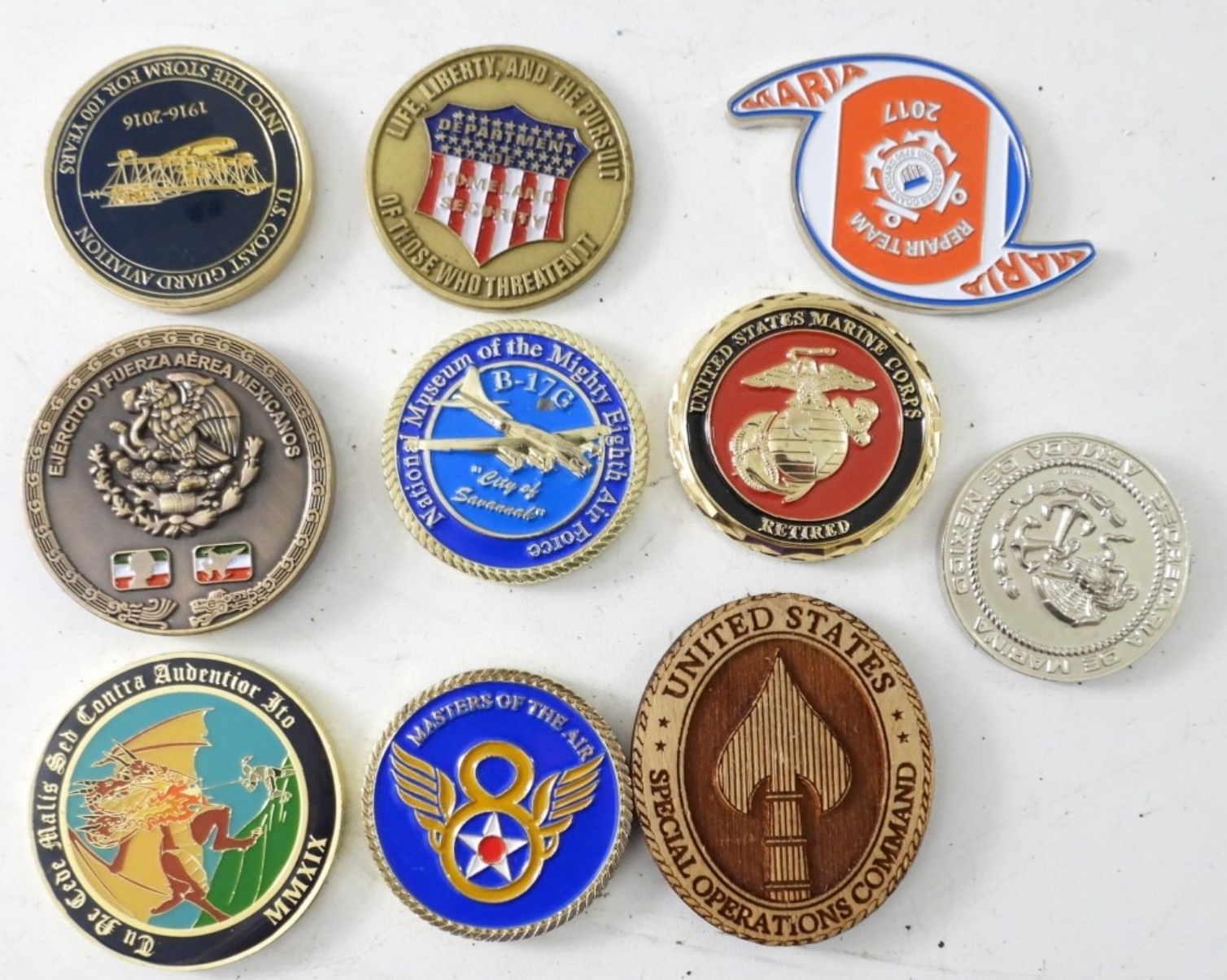 LOT OF 10 MILITARY CHALLENGE & SERVICE COINS