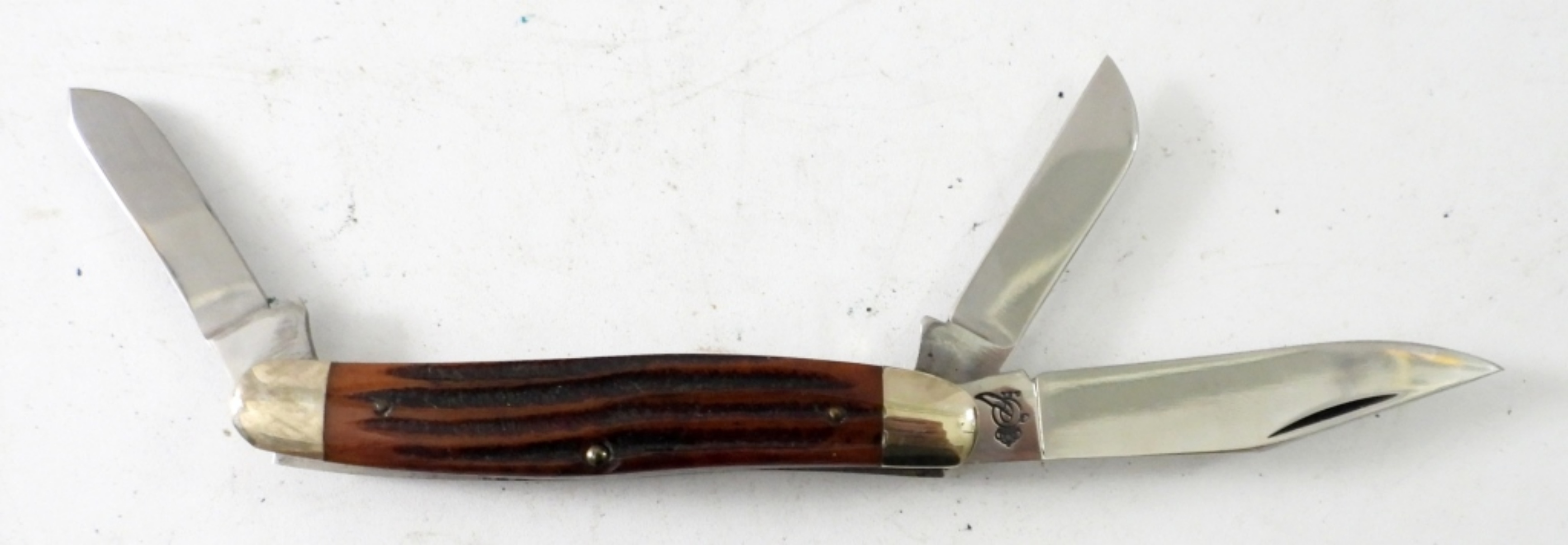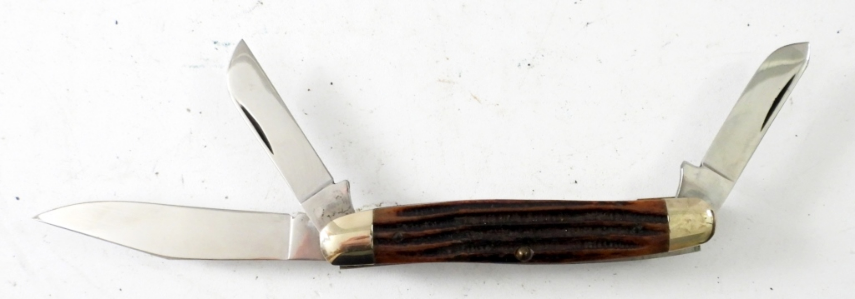 QUEEN CUTLERY 3 BLADE STOCKMAN KNIFE, MADE IN THE USA BROWN BONE HANDLE, 6 1/4 ” POCKET KNIFE, 3″ BLADE
