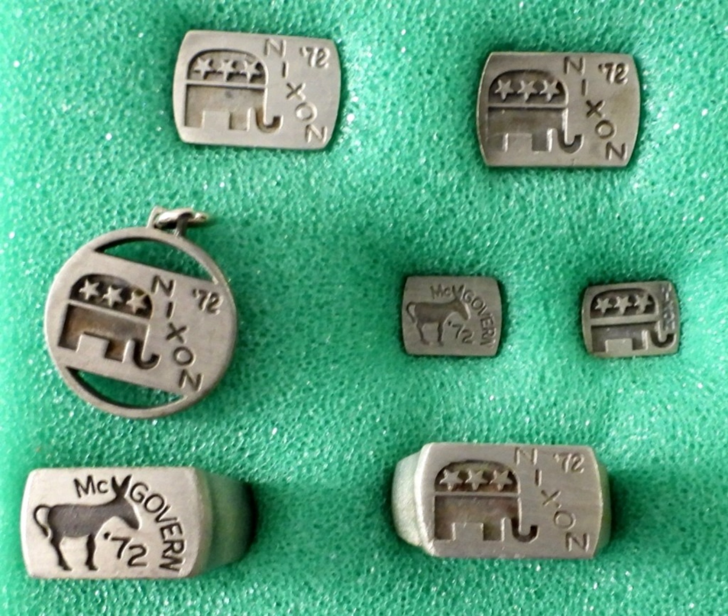 (2) RINGS ADJUSTABLE, CUFF LINKS, TIE PINS & PENDANT – LIKE NEW