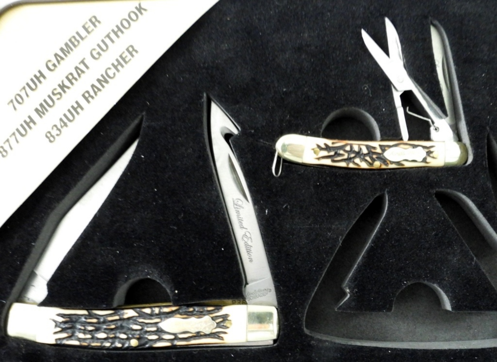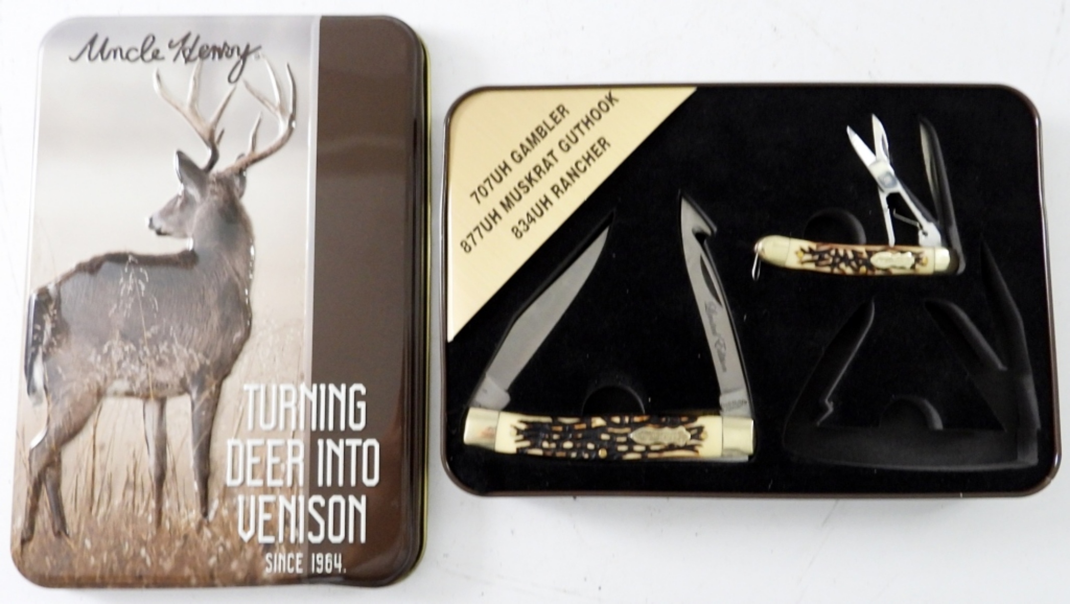 missing (1) from set – INCLUDES 707 UH GAMBLER & 877UH MUSKRAT GUTHOOK – LIKE NEW