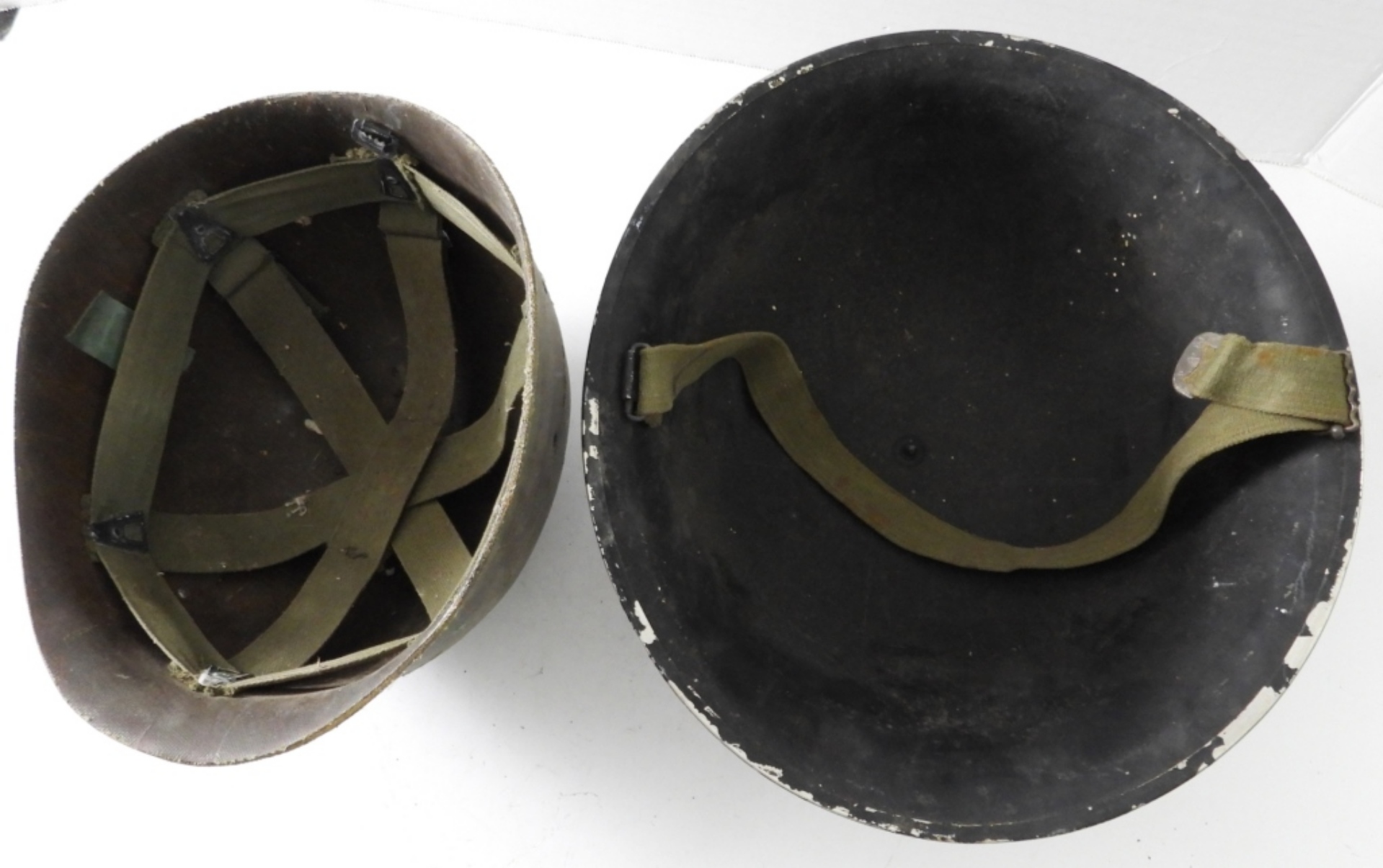 VINTAGE US ARMY MILITARY M1 STEEL HELMET & LINER WITH ORIGINAL STRAPS, LOT OF 2