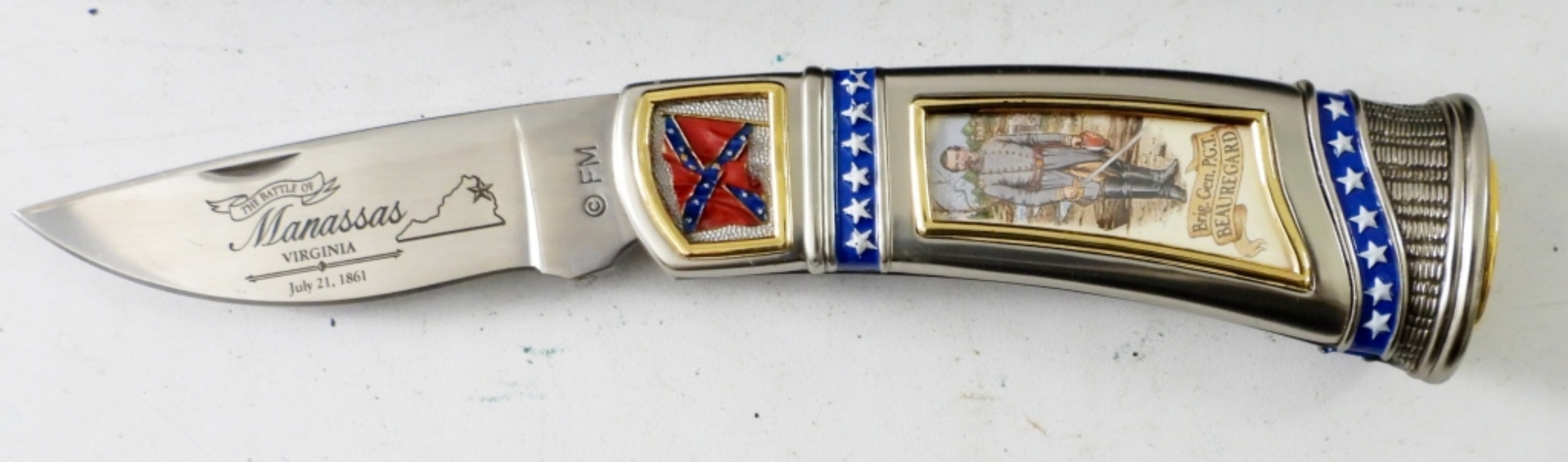 FRANKLIN MINT BATTLE OF MANASSAS VIRGINIA 1861 ,BRIG. GEN . P.G.T. BEAUREGARD COLLECTORS POCKET KNIFE. 7″ KNIFE ,3″ BLADE. IN A FM COLLECTORS POUCH