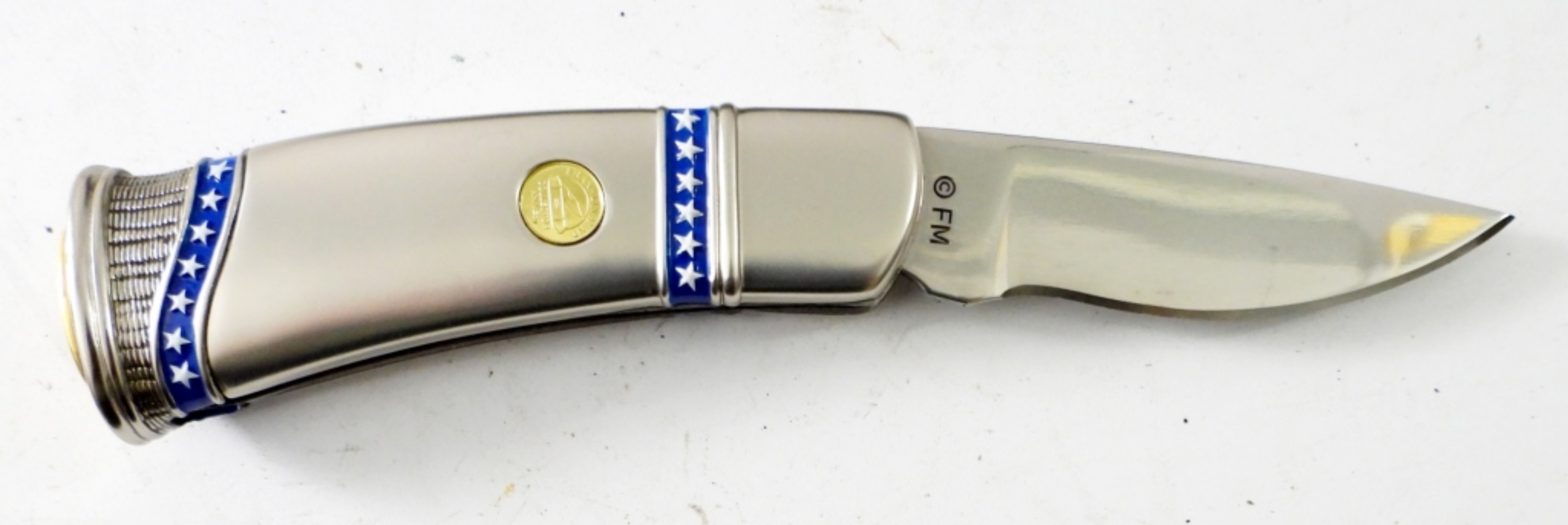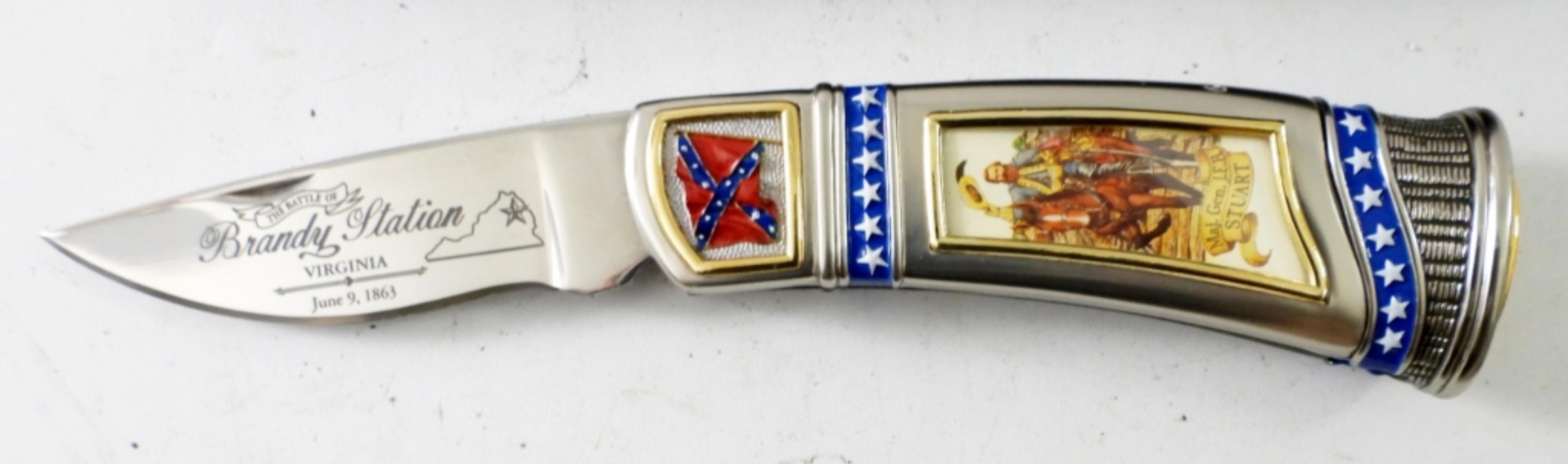 FRANKLIN MINT CIVIL WAR BATTLE OF BRANDY STATION VIRGINIA 1863.MAJ.GEN.JEB STUART COLLECTORS KNIFE & CASE 7″ KNIFE 3″ ETCHED BLADE