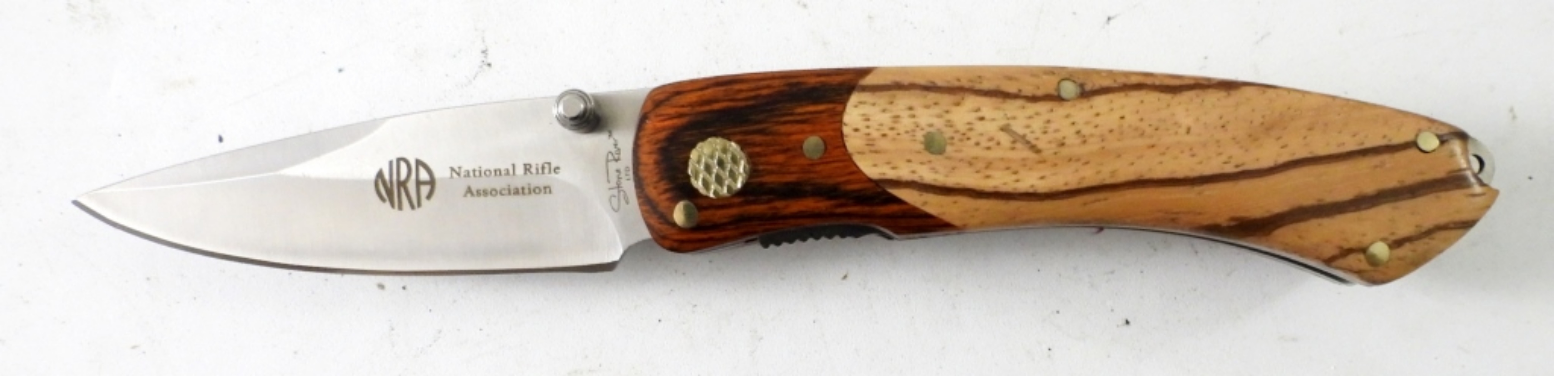 NRA CAMPAIN STONE RIVER LTD POCKET KNIFE 27903. WOOD HANDLE LOCK BACK , VERY NICE NEW IN BOX