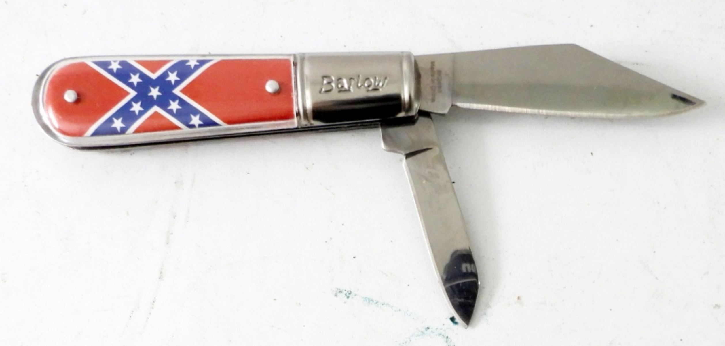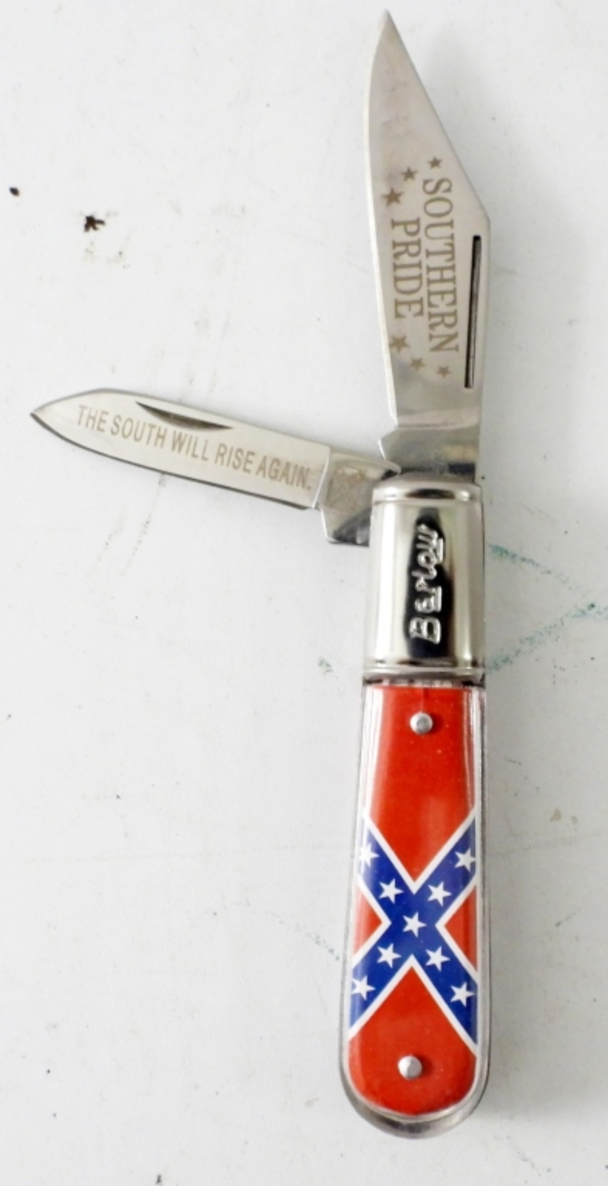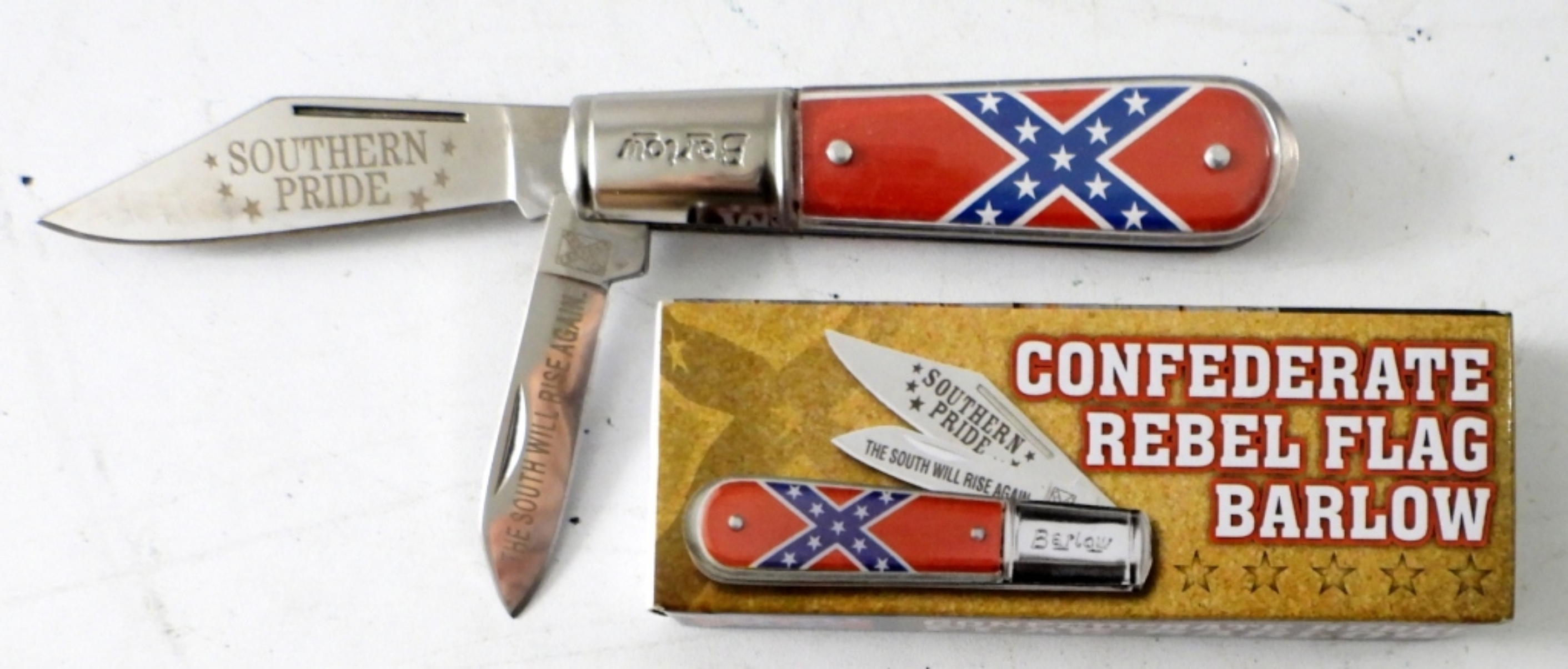 BERLOW CONFEDERATE REBEL FLAG POCKET KNIFE .BK2683, 2 1/2″ BLADE ETCHED SOUTHERN PRIDE & THE SOUTH WILL RISE AGAIN. IN ORIGINAL BOX