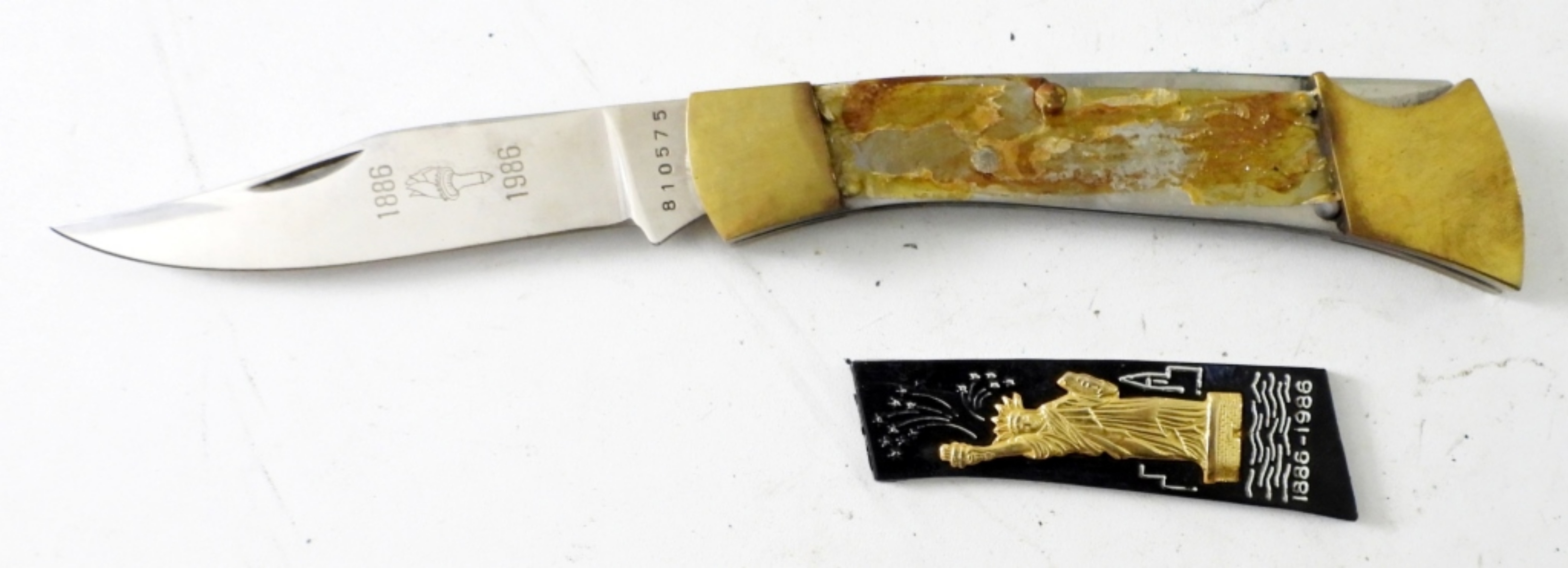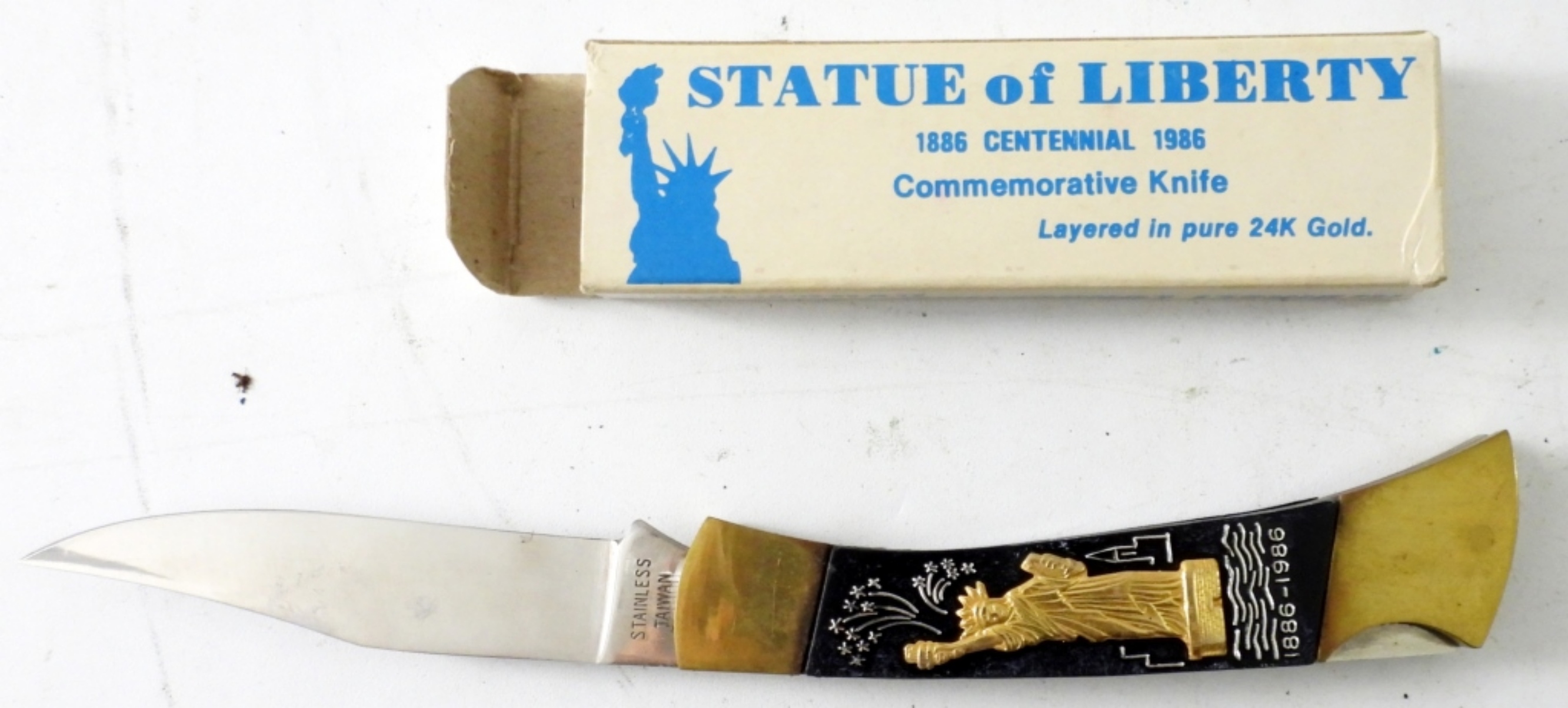 STATUE OF LIBERTY 1886 CENTENNIAL 1986 COMMEMORATIVE KNIVE WITH 24K GOLD PLATED
