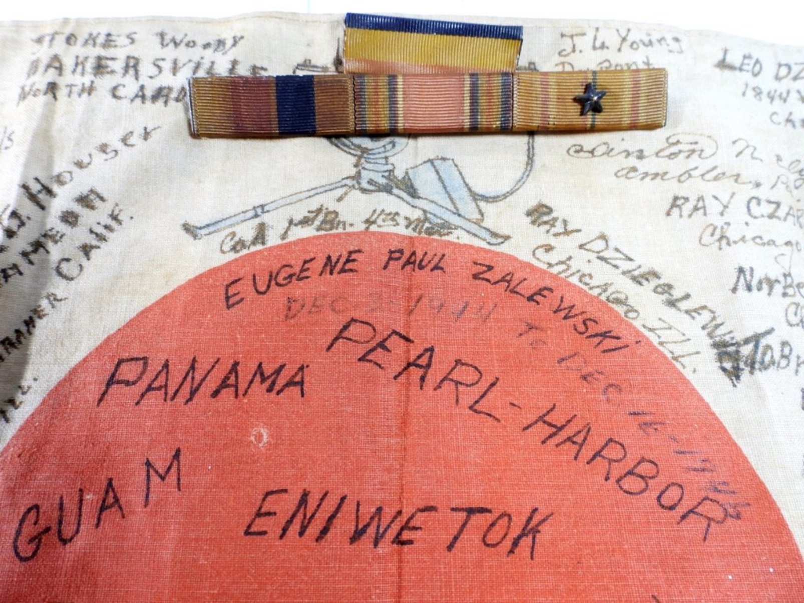 RARE FIND – WWII ERA / FLAG & AWARD MEDAL BAR – 13″ x 10″