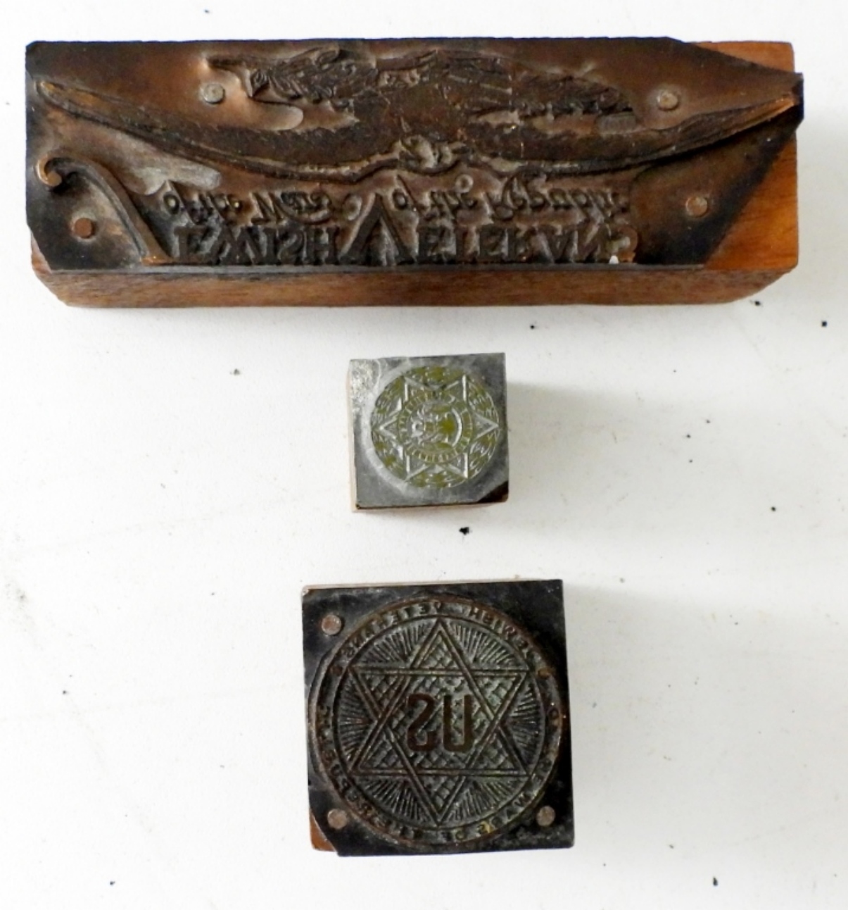 (4) 1955 VINTAGE PRINTING PRESS BLOCKS; JEWISH WAR VETERANS OF THE UNITED STATES .(LARGEST ONE IS 4X41/2,SMALLEST IS 1/2)
