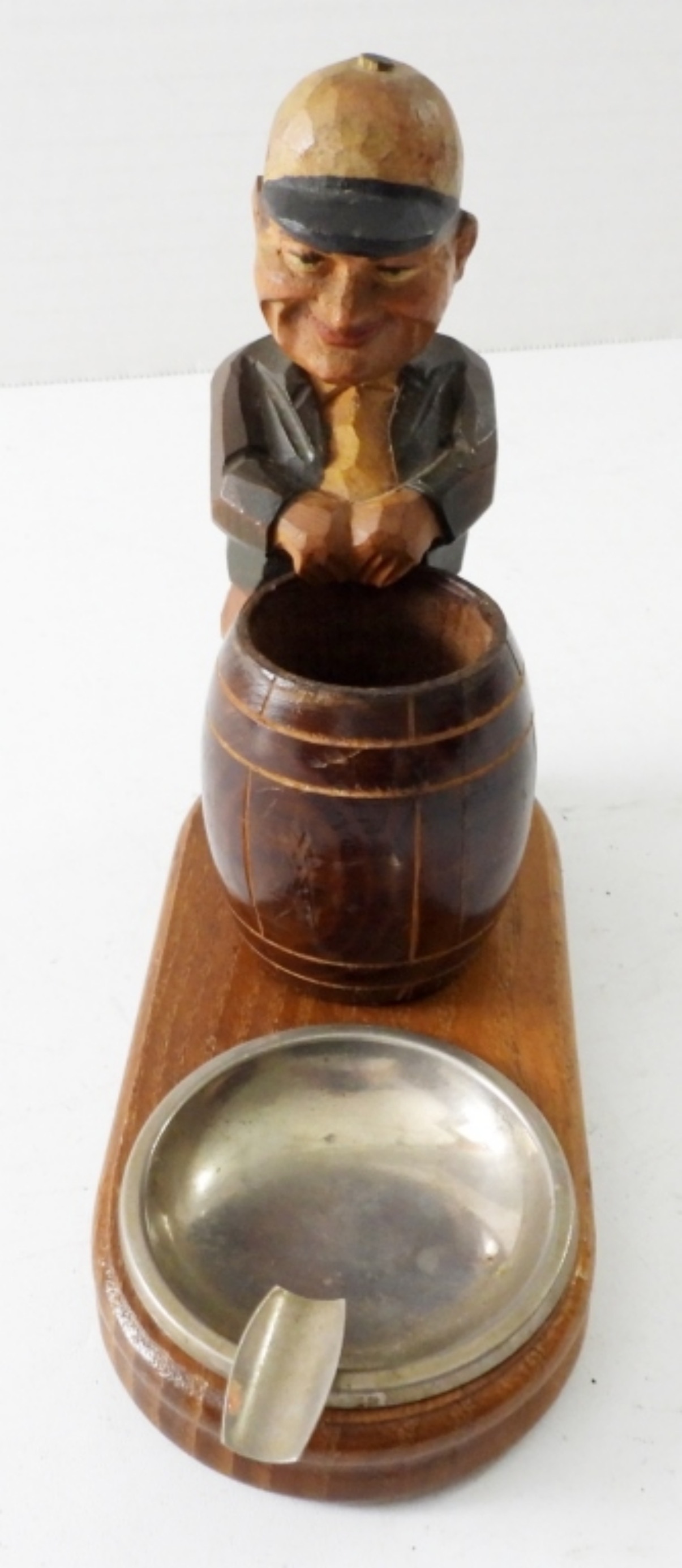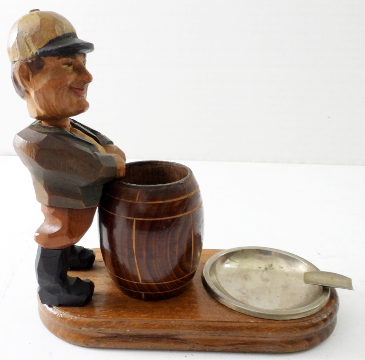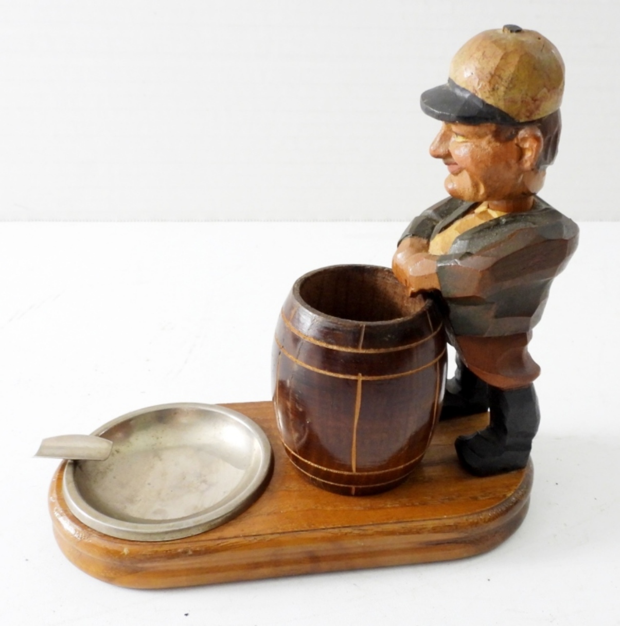VINTAGE WOODED HANDCRAFTED CIGARETTE HOLED AND ASHTRAY