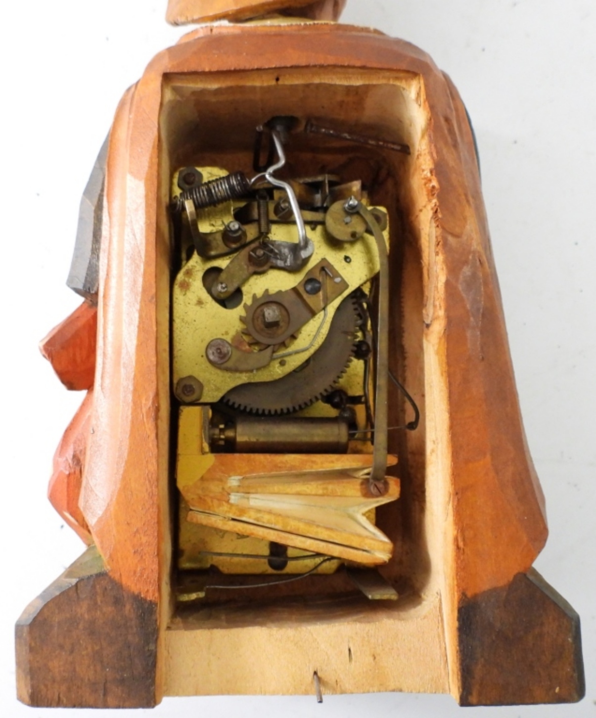 UNIQUE VINTAGE CARVED GERMAN WHISTLER.IN RUNNING CONDITION BUT DOES NOT WHISTLE ,KEY IS NOT ORIGINAL TO HIM BUT DOES WORK