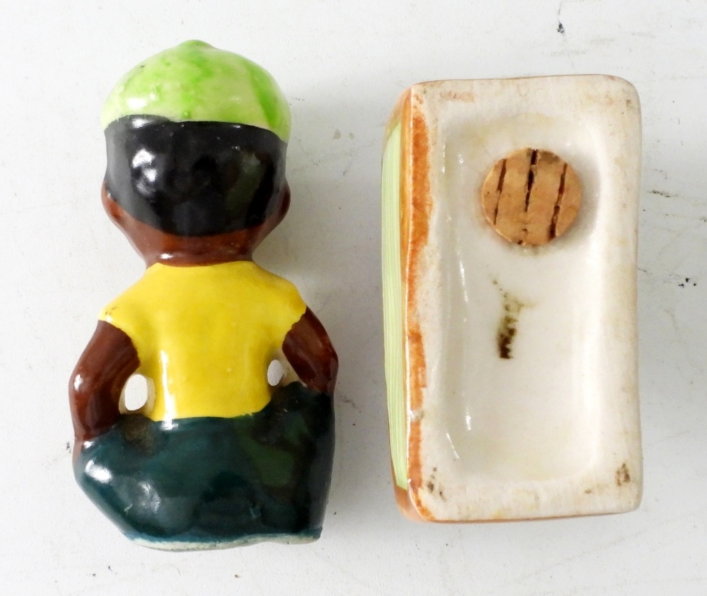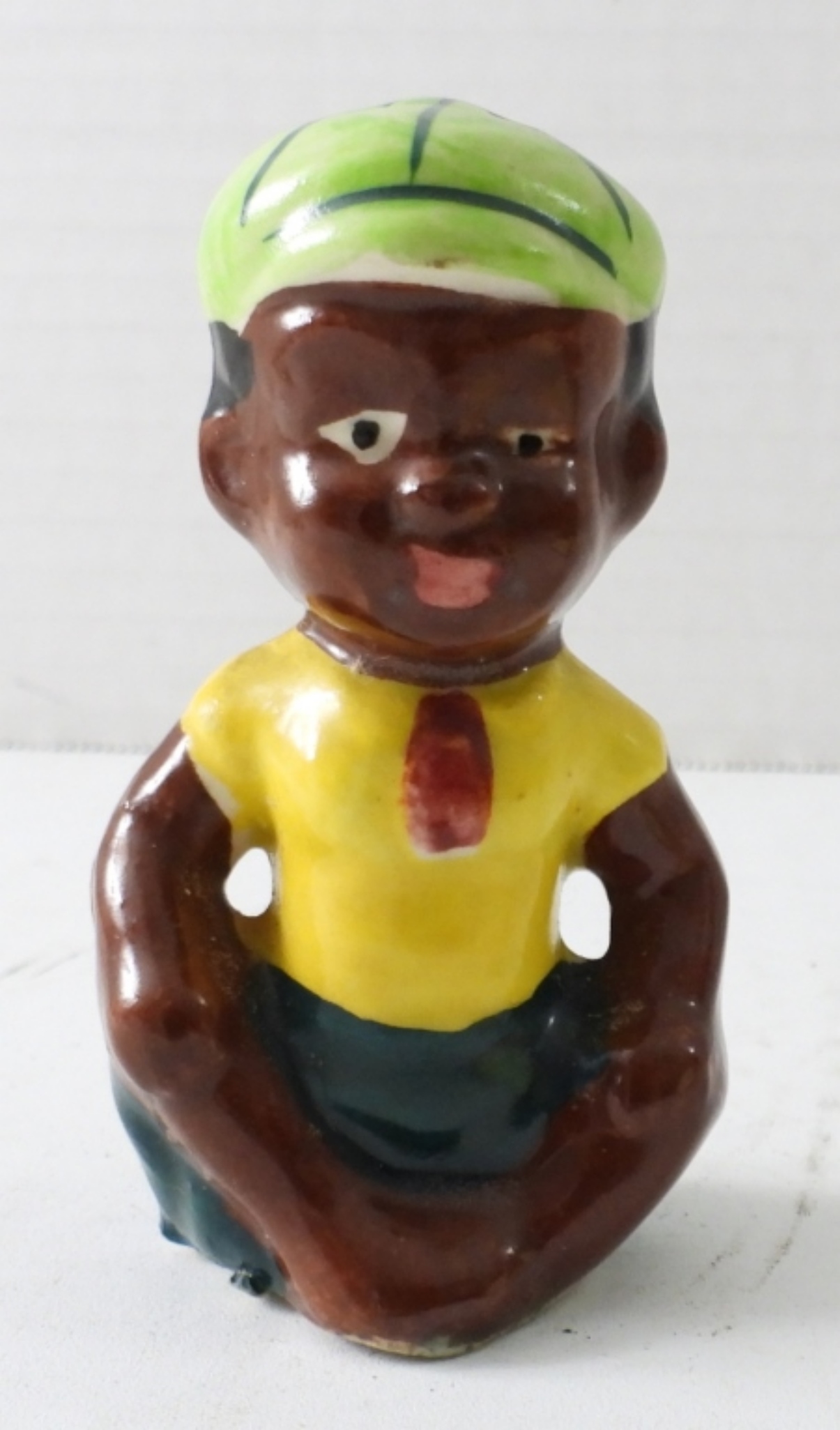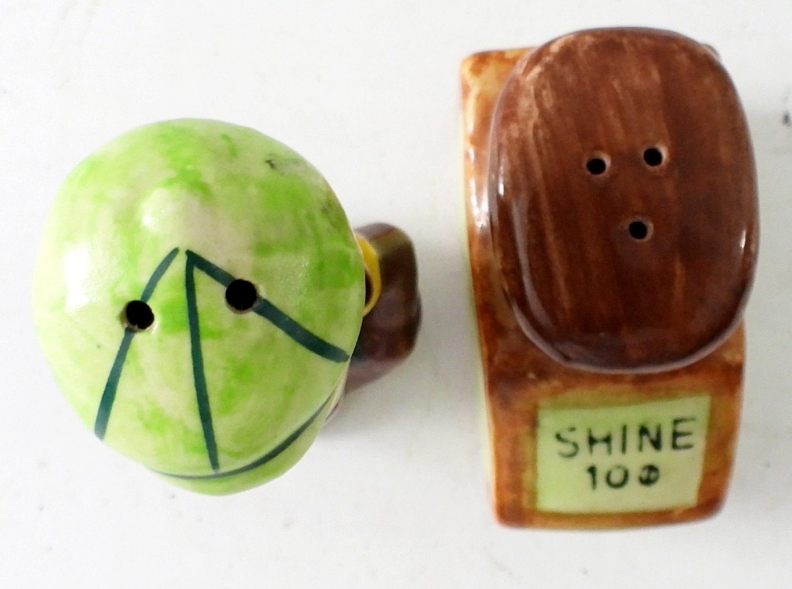 1 SET OF VINTAGE SALT & PEPPER SHAKERS, BLACK AMERICANA BOY WITH SHOE SHINE STAND( 3 IN TALL)