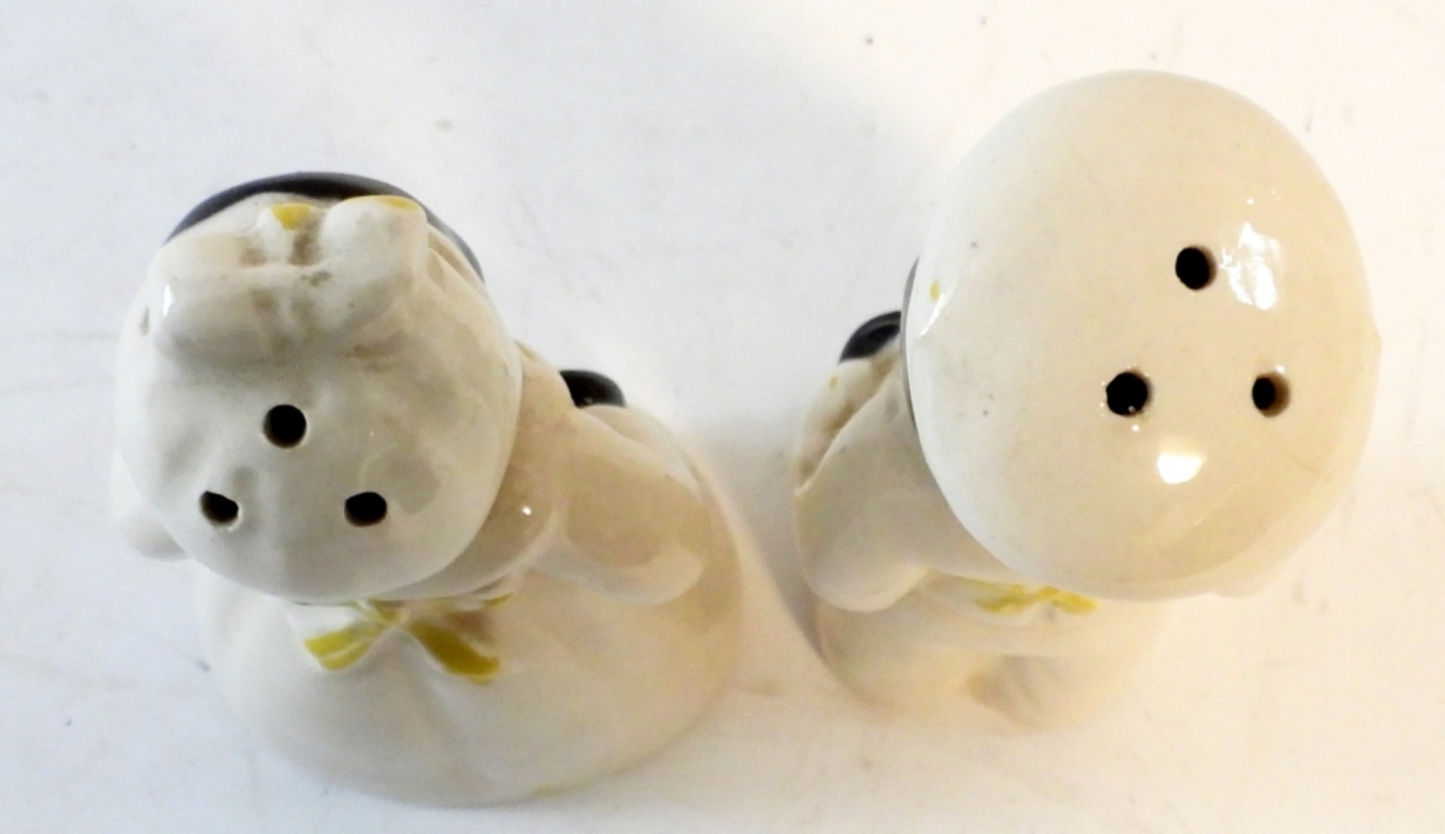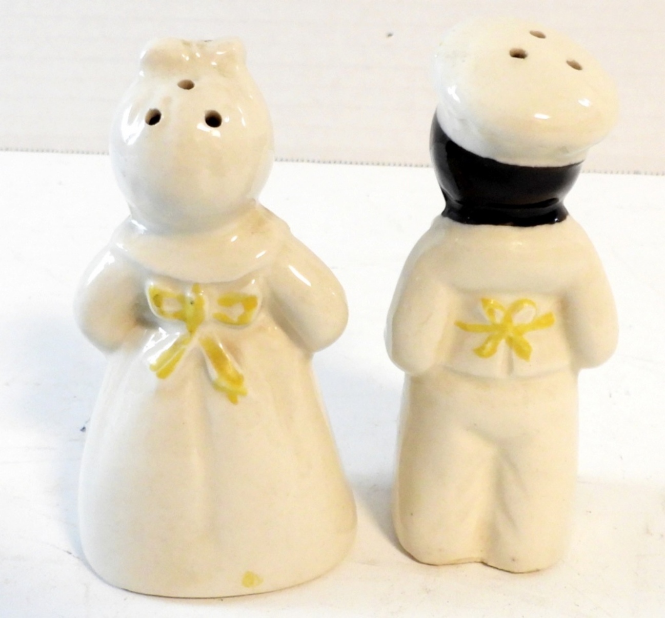 VINTAGE MAMMY& CHEF SALT AND PEPPER SHAKERS , WHITE OUTFIT (4 IN TALL)