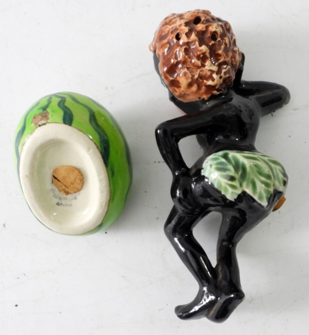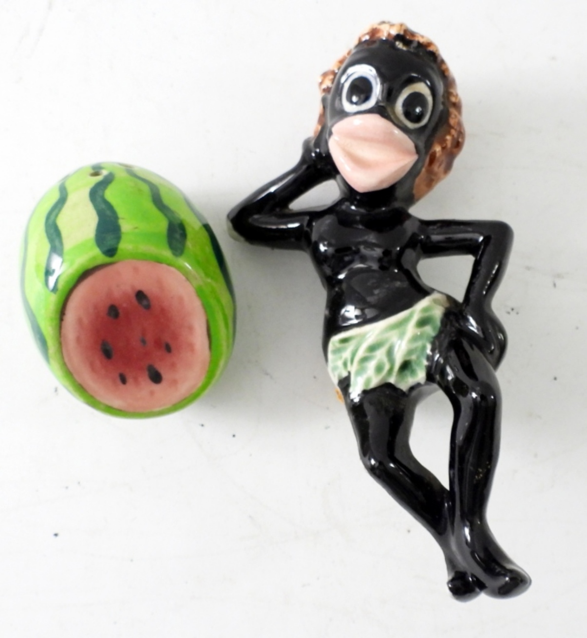 ( 2 PIECE)VINTAGE WATERMELON BLACK AMERICANA S&P SHAKERS, (5 IN LONG)