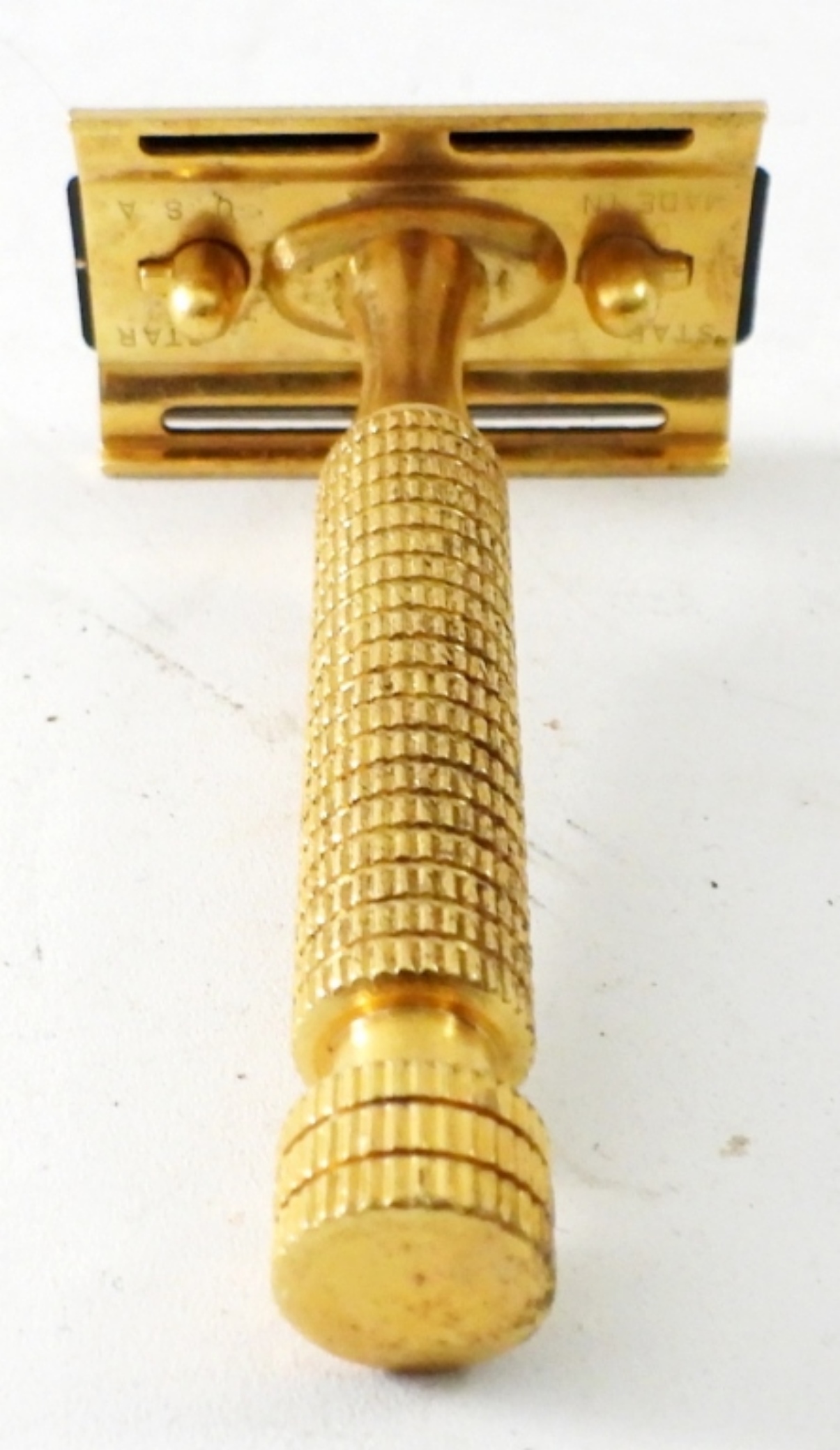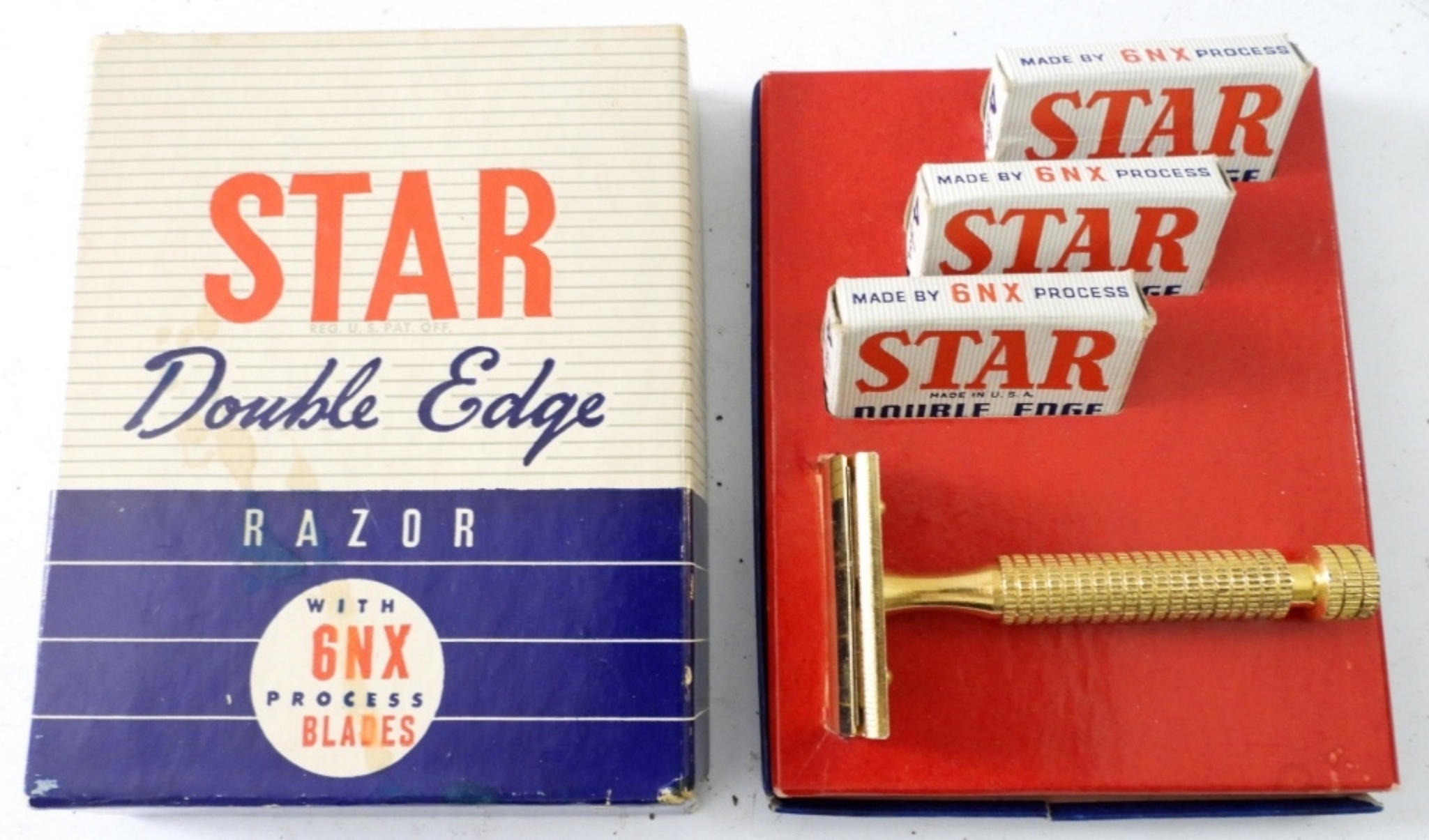 STAR BRAND GOLD TONE DOUBLE EDGE RAZOR IN ORIGINAL CASE WITH 3 PKS RAZORS