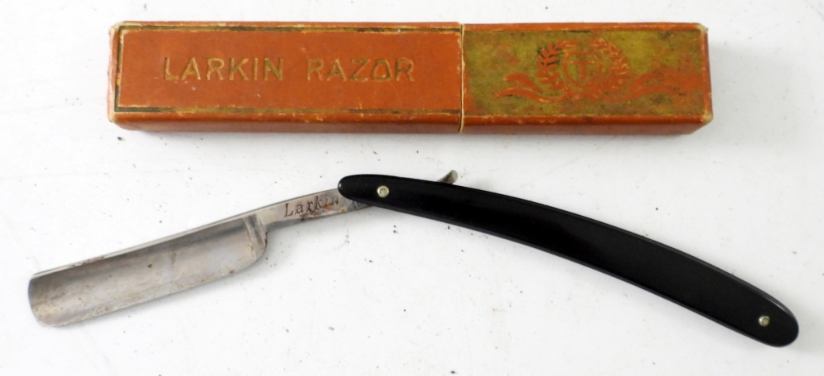 VINTAGE LARKIN STRAIGHT RAZOR IN ORIGINAL BOX , BLACK HANDLE