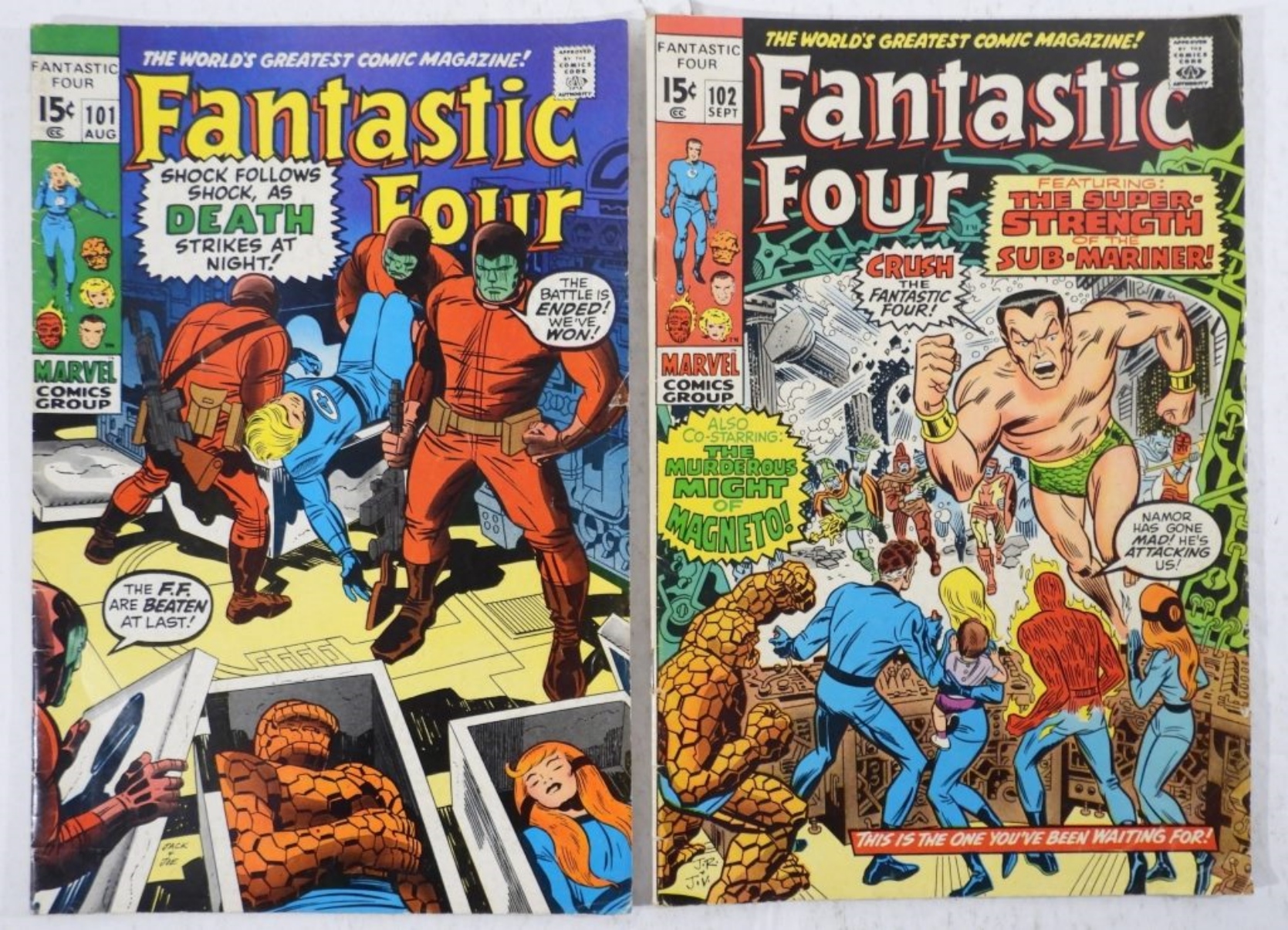 1970 VG CONDITION, #101 AND #102- FINAL CONTINUOUS STAN LEE AND JACK KIRBY COLLABORATION OF THE FANTASTIC FOUR TITLE