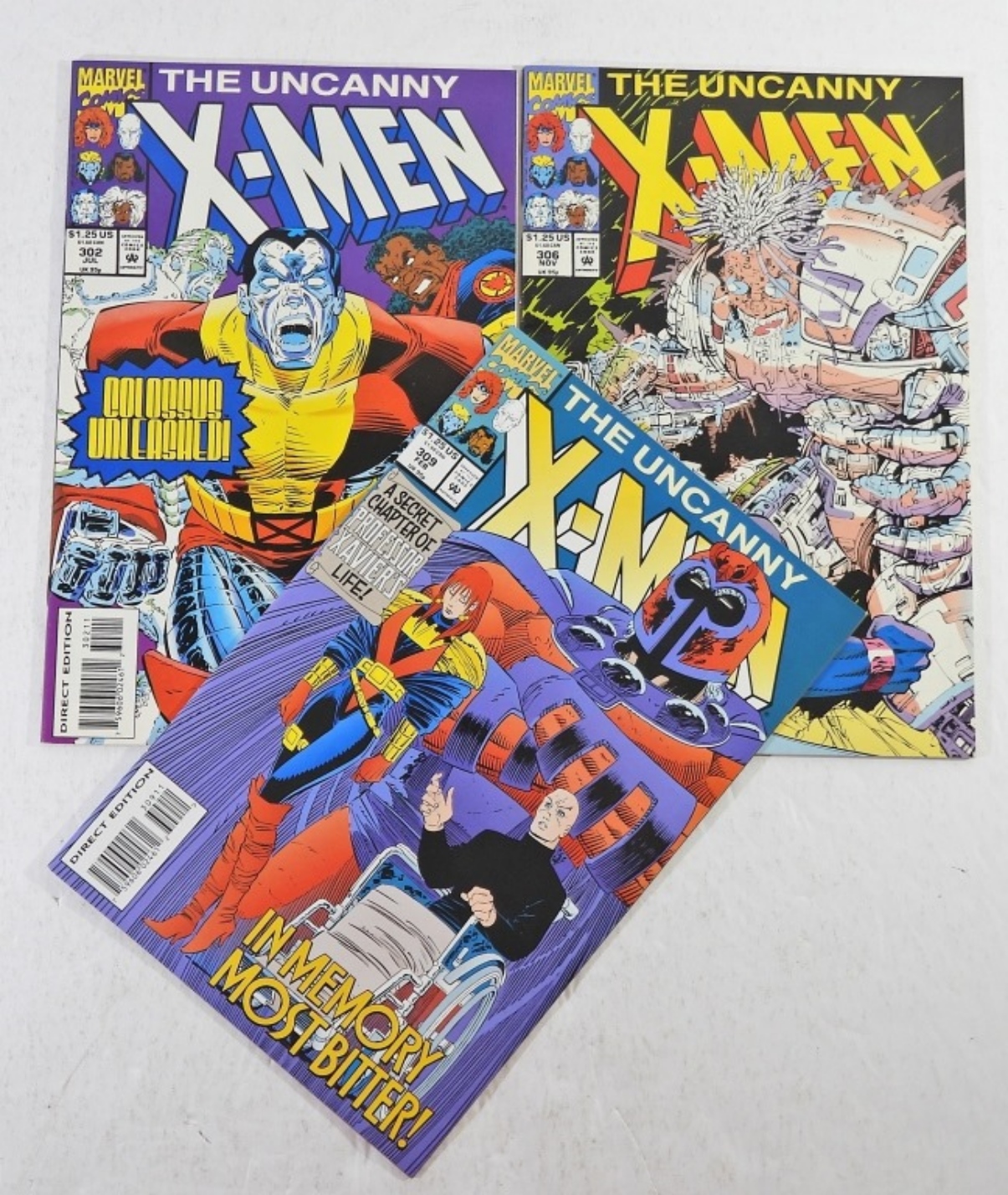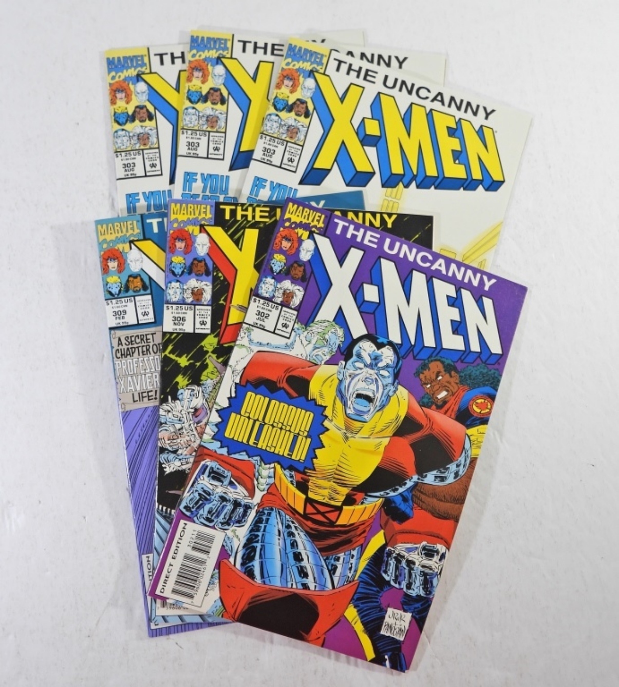 SIX MARVEL COMICS-THE UNCANNY X-MEN. #302 COLOSSUS UNLEASHED NM. (3) # 303 NM. #306 NM. #309 IN MEMORY MOST BITTER-NM.