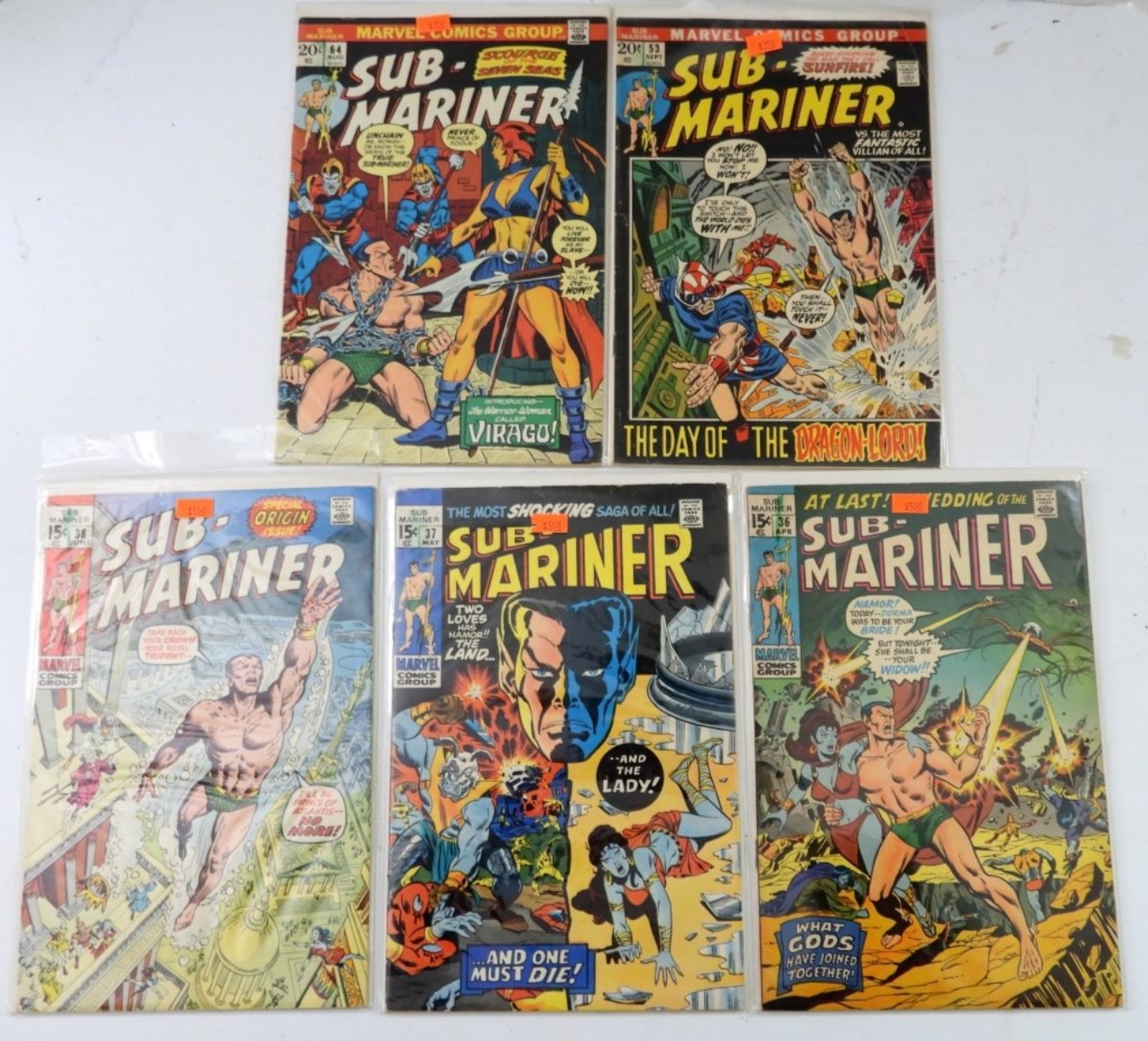 (5) 1971-1973 MARVEL SUB-MARINER#36,37, DEATH OF DORMA, 38 ORIGIN OF NAMOR,53 &64(VG/VF)