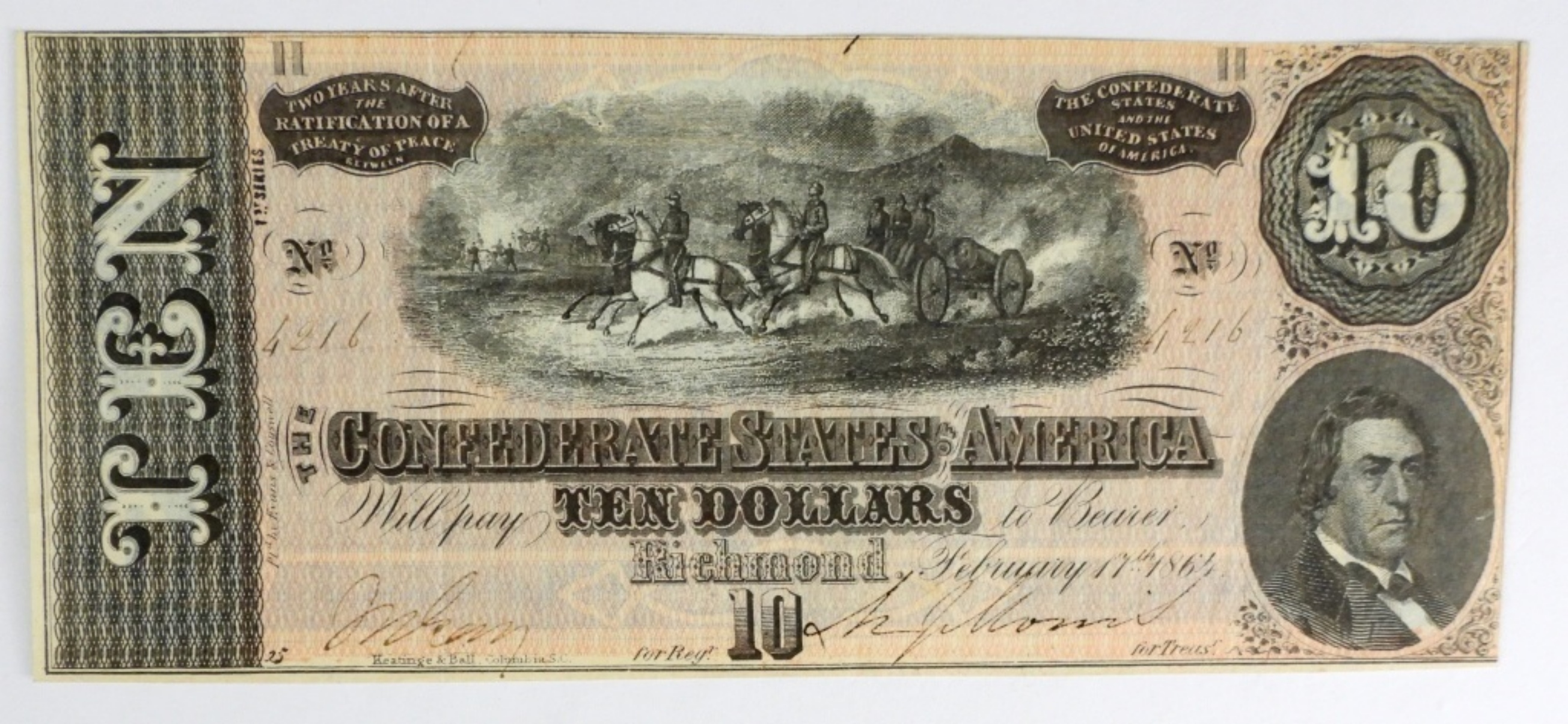 1864 $10 CONFEDERATE STATES OF AMERICA, RICHMOND( HORSEMAN ILLUSTRATION )NICE CONDITION