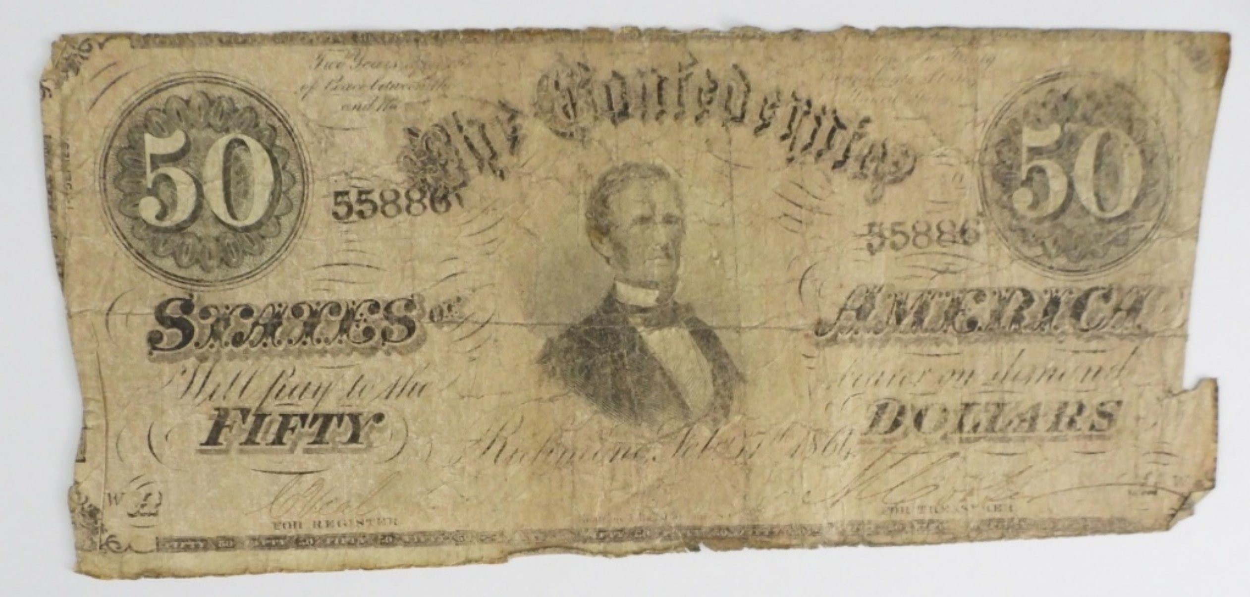 1864 $50 CONFEDERATE STATES OF AMERICA , FEB 17TH 1864 RICHMOND VA