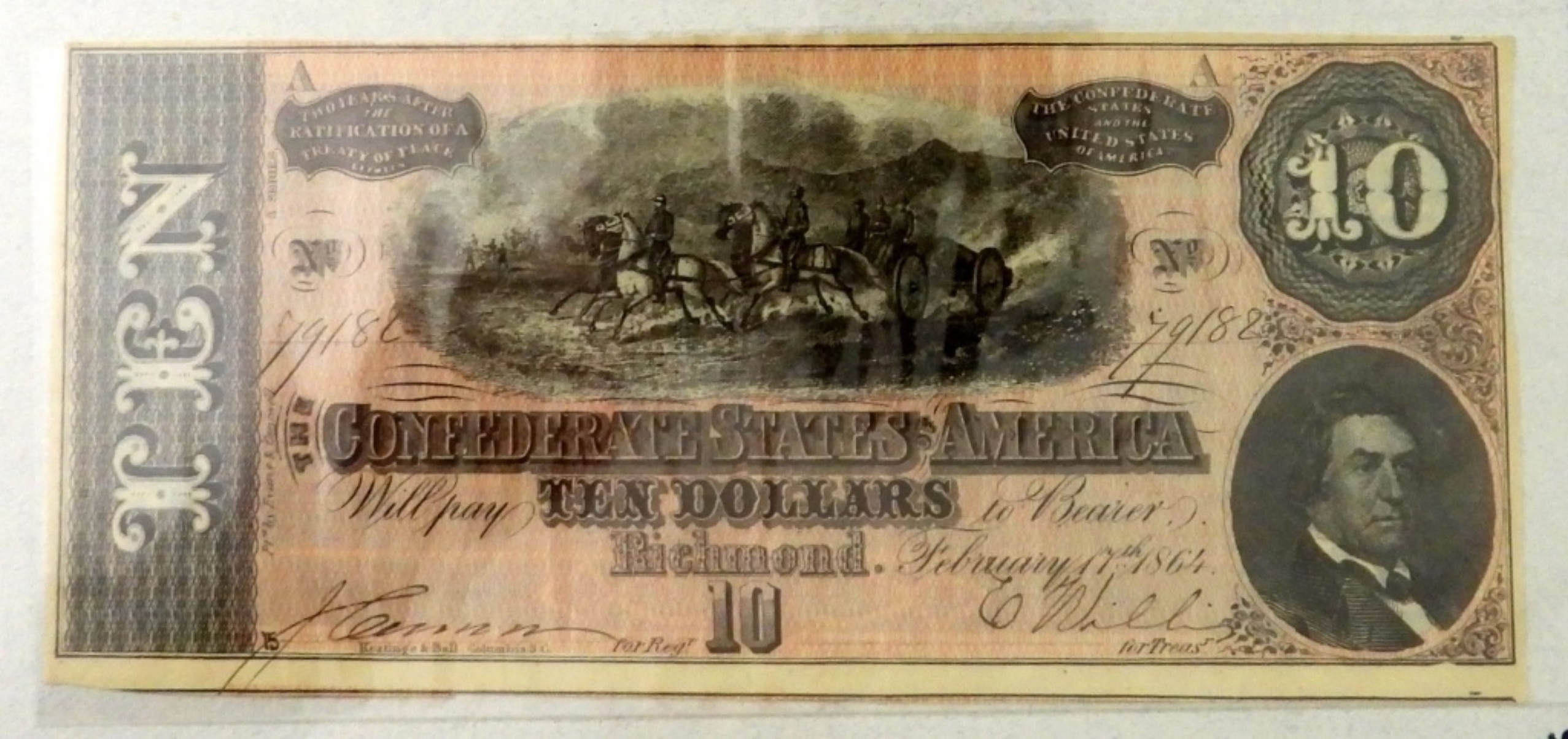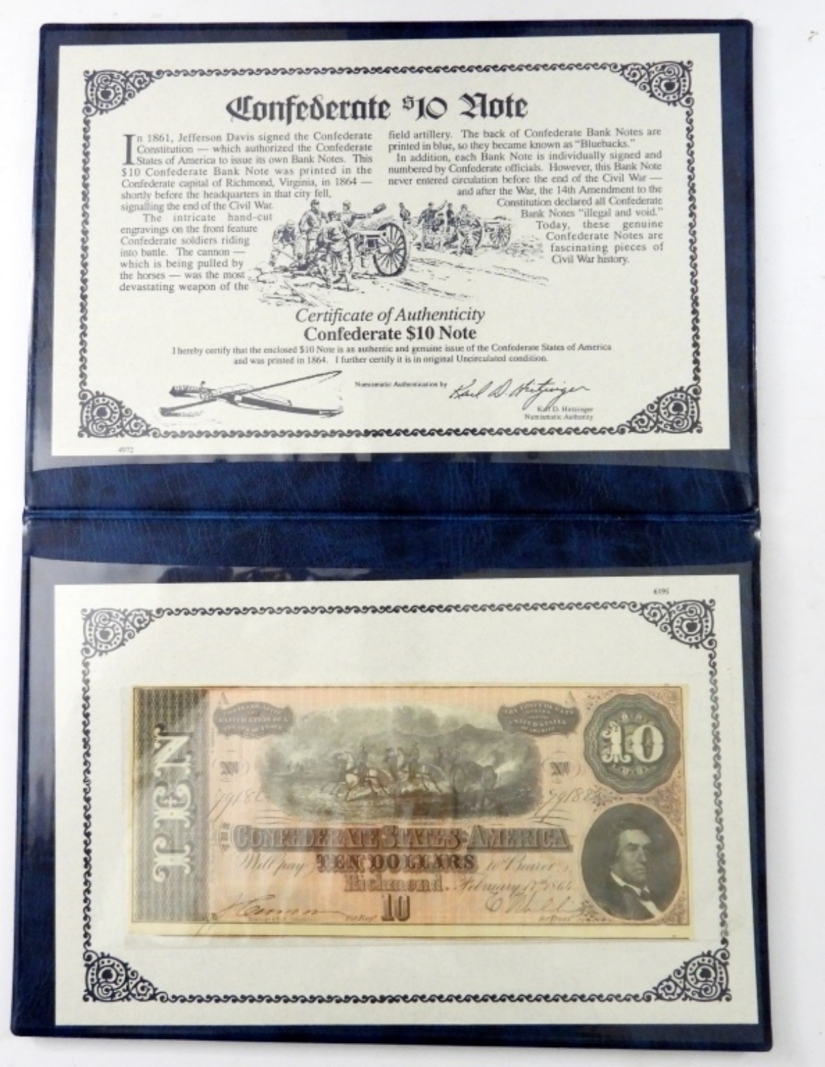 1864 UNCIRCULATED #10 CONFEDERATE STATES OF AMERICA ,RICHMOND VA. WITH COA