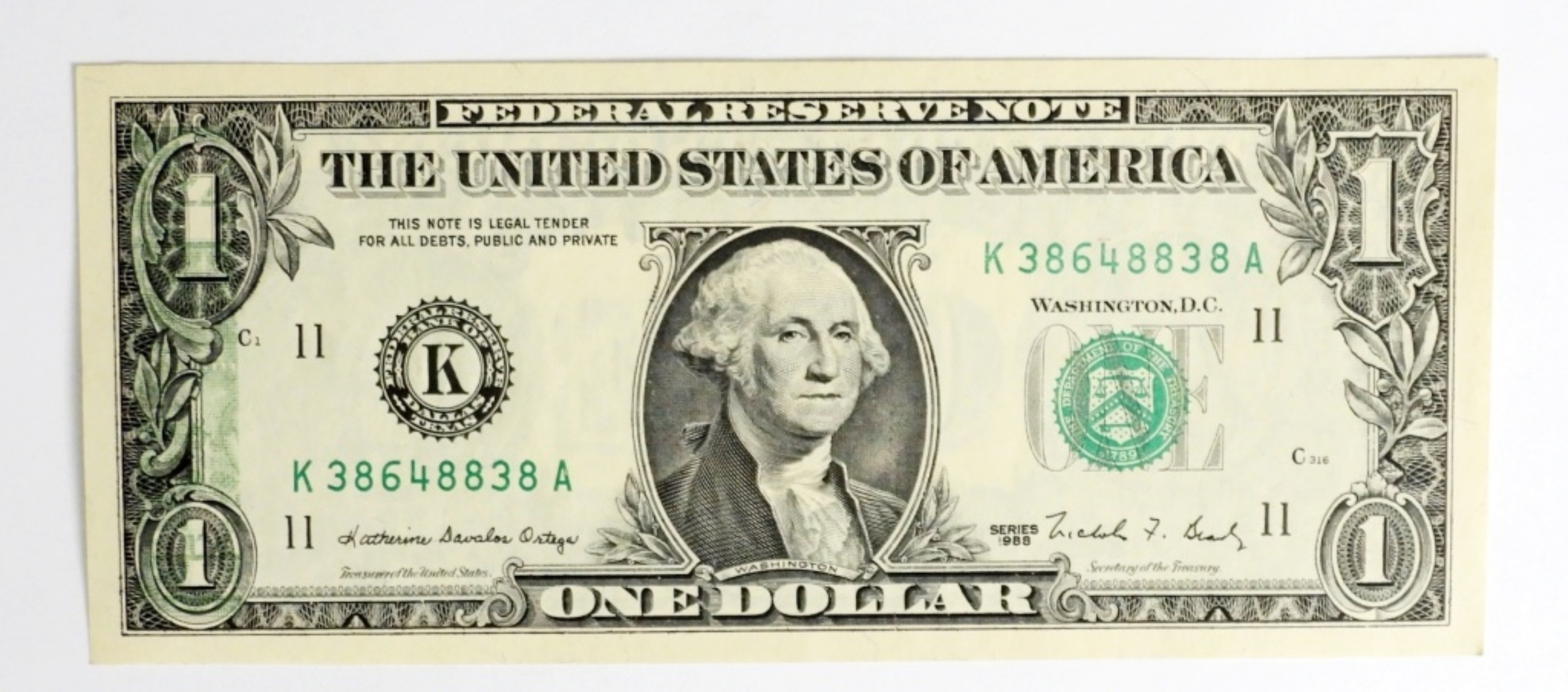 1988 $1 FEDERAL NOTE RESERVE, OVER PRINT ERROR, AU