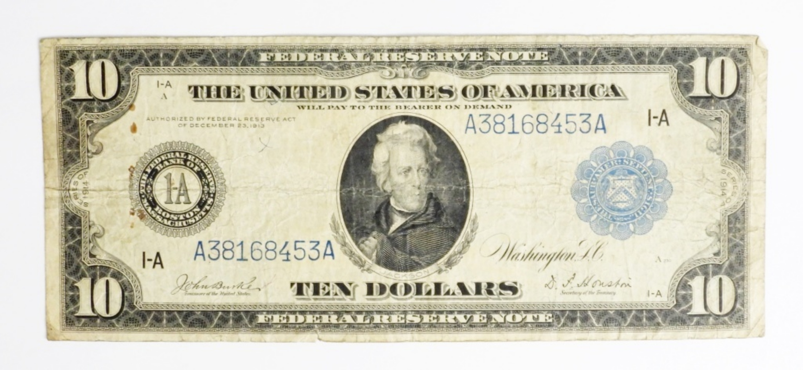 1914 $10 FEDERAL RESERVE BANK OF BOSTON LG SIZE NOTE CURRENCY