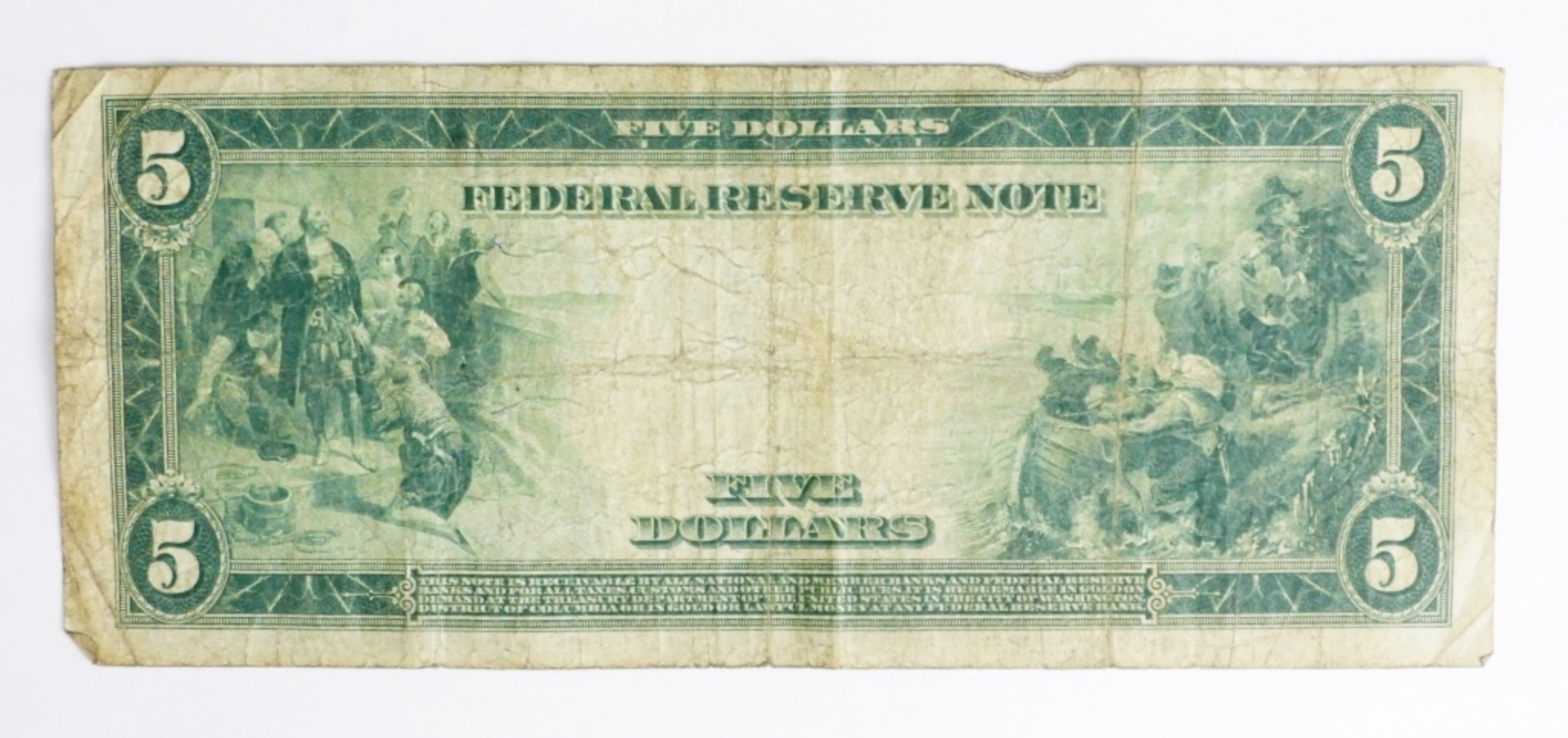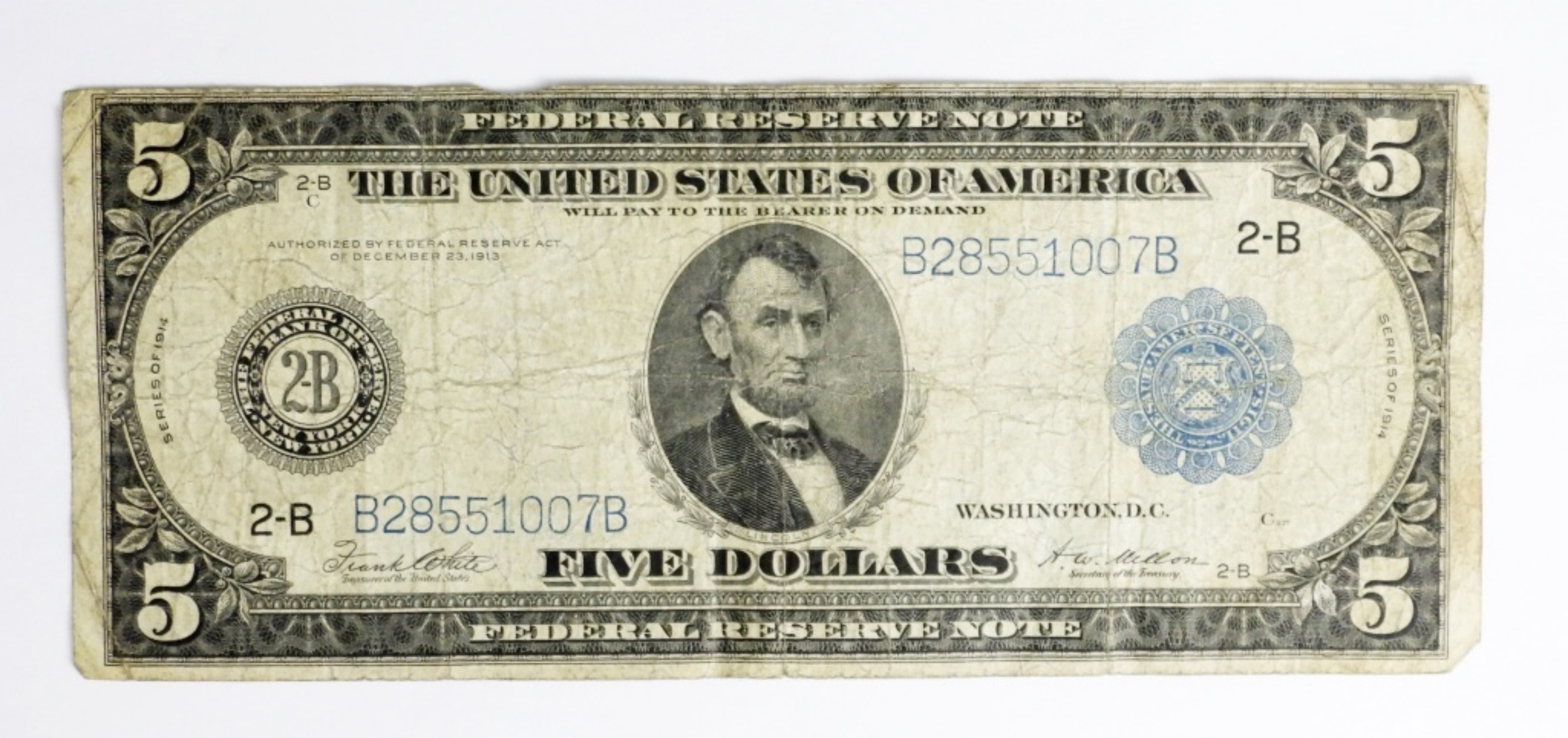 1914 $5 FEDERAL RESERVE NOTE,WELL PRESERVED, CIRCULATED
