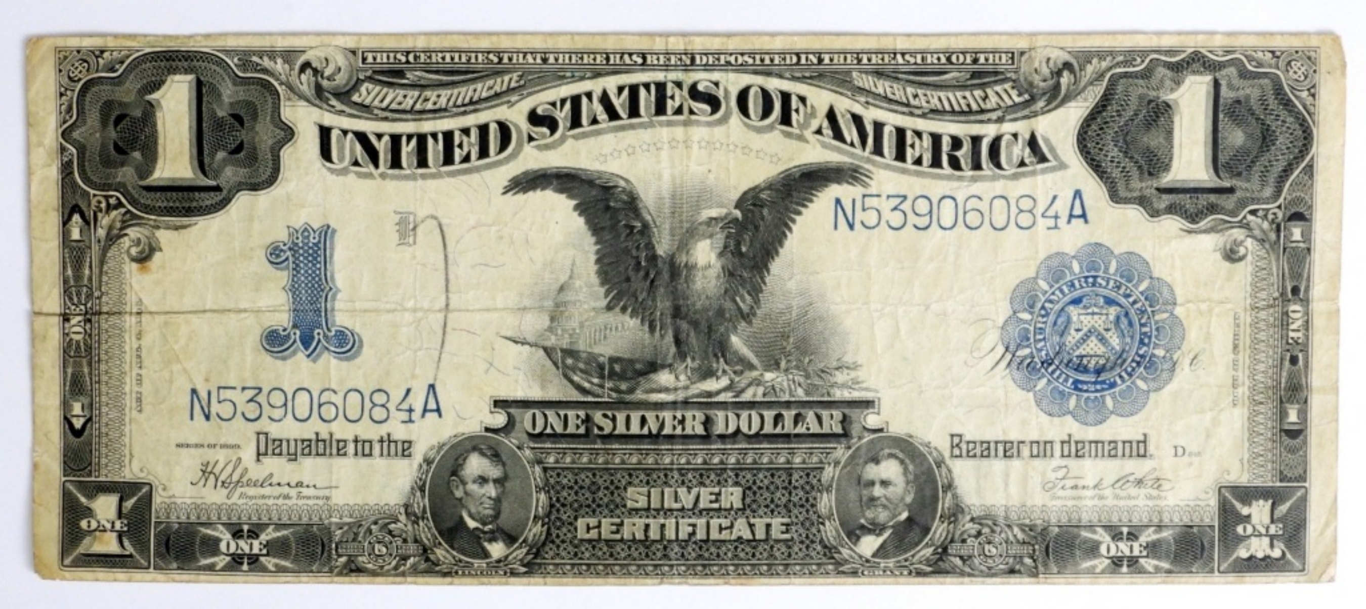 1899 $1 BLACK EAGLE SILVER CERTIFICATE LG SIZE US CURRENCY. NICE CIRC. WELL PRESERVED