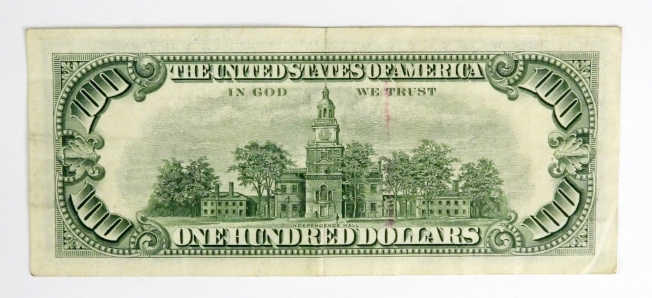 1966 $100 US NOTE, RED SEAL. NICE CIRC