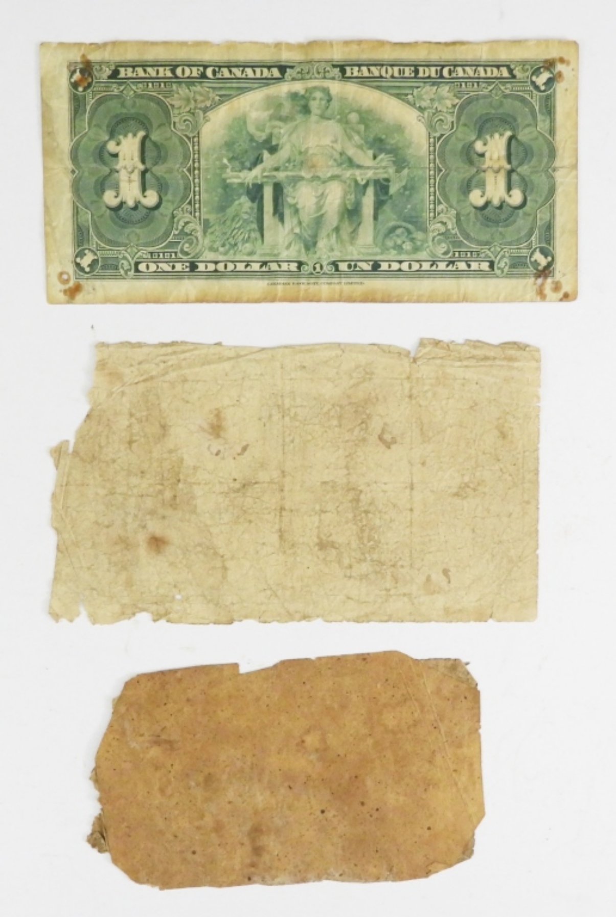 1937 $1 BANK NOTE FEATURING KING GEORGE V, 1837 CANADIAN “BILLET DE CHANGE” BANK NOTE WORTH 15 SOUS ,MONTREAL 1837, VINTAGE MONTREAL 1 FRANCO 10 PENCE
