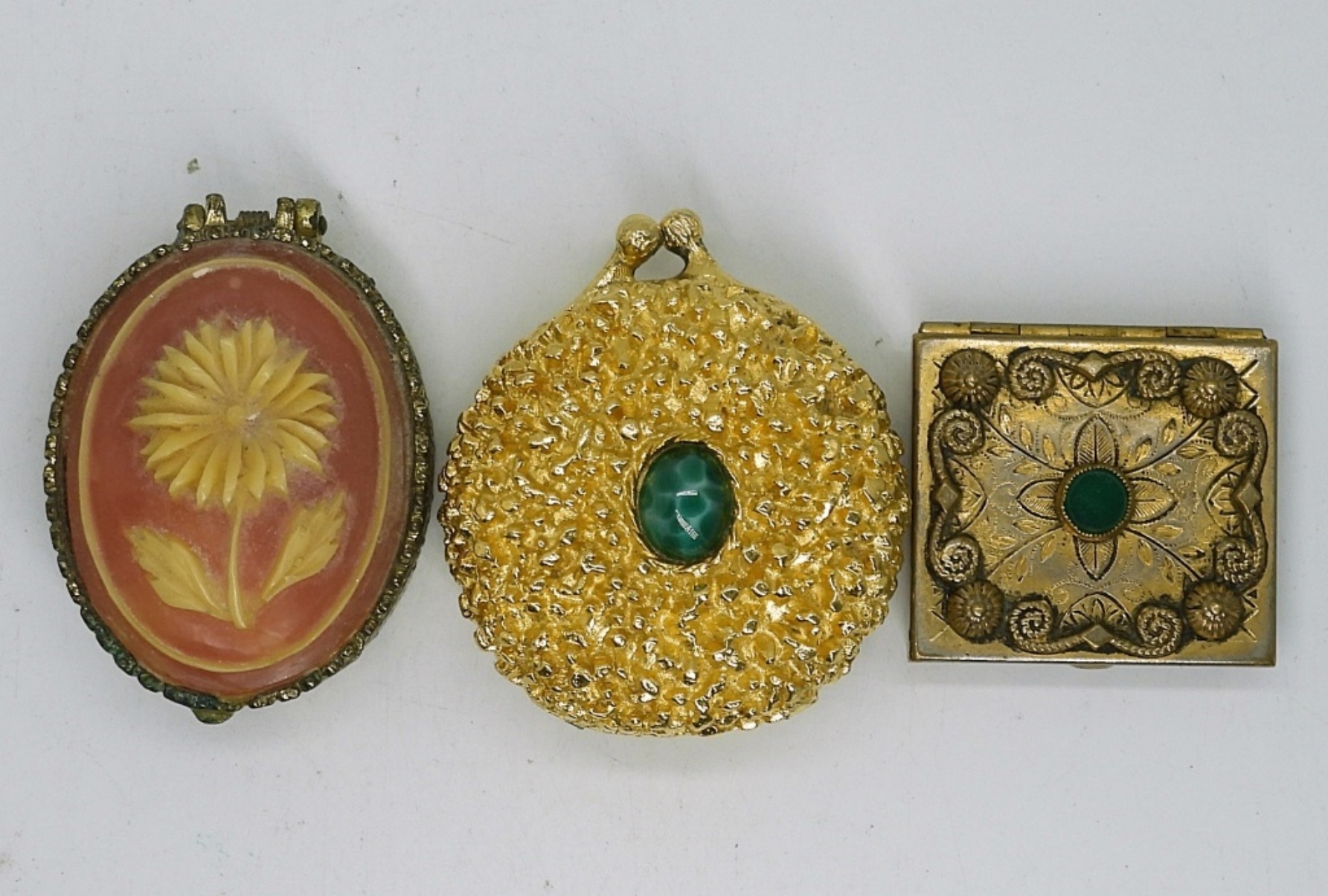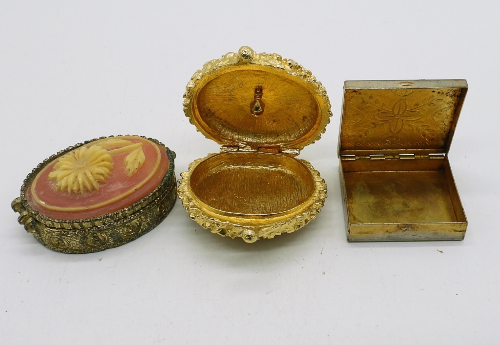 THREE CUTE LITTLE VINTAGE GOLD TONE TRINKET BOXES. 1-1.5″.